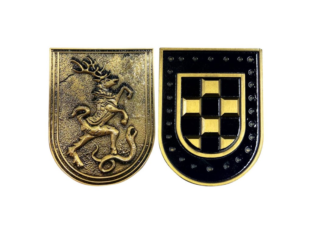 Rodina Salazarovcov má v horskej oblasti Valdelobos v Španielsku vplyv už po stáročia, od Gregoria Salazara, prvého grófa z Valdelobos (ktorý postavil hrad Salazar), až po jeho dnešného priameho potomka Ramóna. Rodový erb používa Ashley v hre Resident Evil 4 na otvorenie brány a získanie prístupu do veľkej sály hradu. Táto replika medailónu je silne vyrazená v starožitnom zlate, je jednou z 2005 kusov na celom svete (po pôvodnom vydaní hry Resident Evil 4) a na zadnej strane je individuálne očíslovaná - Oficiálne licencovaná - Limitovaná v počte 2 005 kusov - Individuálne očíslovaná - Rozmer 80 x 61 mm - Kov so starožitnou zlatou povrchovou úpravou.