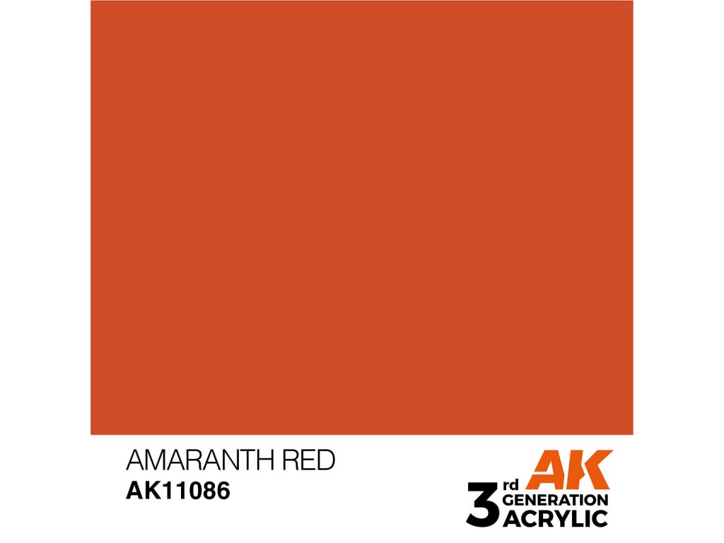 Akrylová farba Amaranth Red od spoločnosti AK Interactive je vhodná na nanášanie štetcom a airbrushom. Akrylové modelárske farby 3. generácie (3Gen) sú doteraz najprepracovanejším zložením akrylových farieb. Farby radu General majú vynikajúce krytie, úžasnú priľnavosť a nové zloženie zabraňuje upchávaniu dýzy bez potreby zdĺhavého miešania farby.Dodatočné parametre
