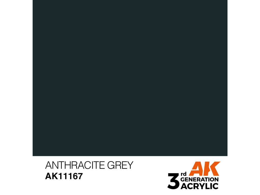 Akrylová farba Anthracite Grey od spoločnosti AK Interactive je vhodná na nanášanie štetcom a airbrushom. Akrylové modelárske farby 3. generácie (3Gen) sú doteraz najprepracovanejším zložením akrylových farieb. Farby radu General majú vynikajúce krytie, úžasnú priľnavosť a nové zloženie zabraňuje upchávaniu trysiek bez potreby zdĺhavého miešania farby.Dodatočné parametre