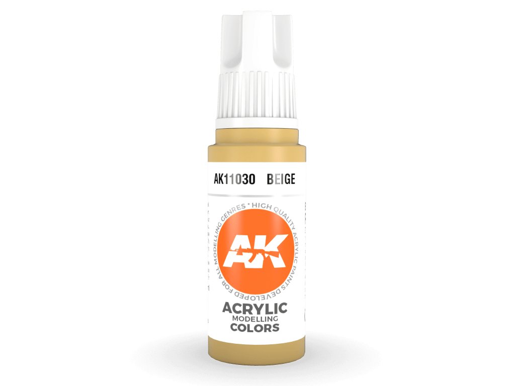 Akrylová farba Beige od AK Interactive je vhodná na nanášanie štetcom a airbrushom. Akrylové modelárske farby 3. generácie (3Gen) sú doteraz najprepracovanejším zložením akrylových farieb. Farby radu General majú vynikajúce krytie, úžasnú priľnavosť a nové zloženie zabraňuje upchávaniu dýzy bez potreby zdĺhavého miešania farby.Dodatočné parametre