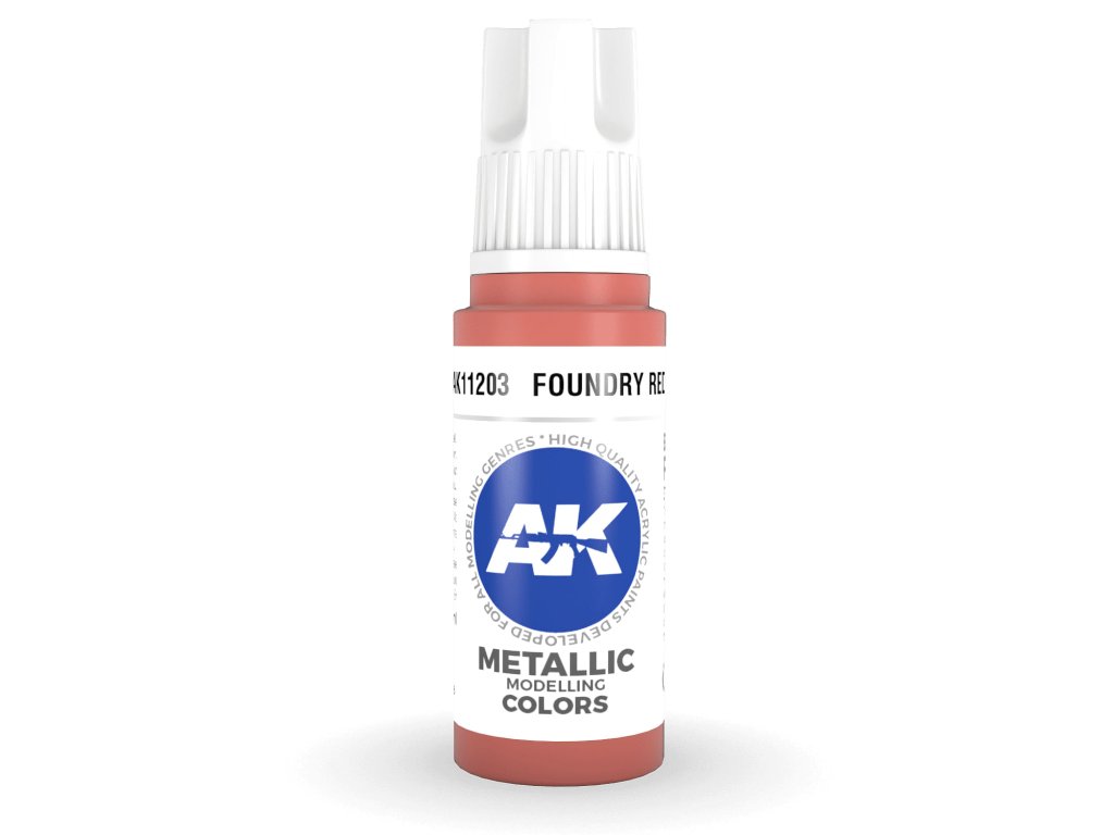 Akrylová farba Metallic Foundry Red od spoločnosti AK Interactive je vhodná na nanášanie štetcom a airbrushom. Akrylové modelárske farby 3. generácie (3Gen) sú doteraz najprepracovanejším zložením akrylových farieb. Farby radu General majú vynikajúce krytie, úžasnú priľnavosť a nové zloženie zabraňuje upchávaniu dýz bez potreby zdĺhavého miešania farby.Dodatočné parametre