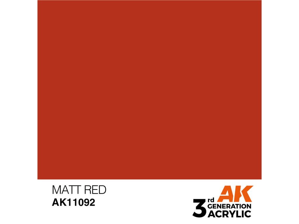 Akrylová farba Matt Red od AK Interactive je vhodná na nanášanie štetcom a airbrushom. Akrylové modelárske farby 3. generácie (3Gen) sú doteraz najprepracovanejším zložením akrylových farieb. Farby radu General majú vynikajúce krytie, úžasnú priľnavosť a nové zloženie zabraňuje upchávaniu dýzy bez potreby zdĺhavého miešania farby.Dodatočné parametre