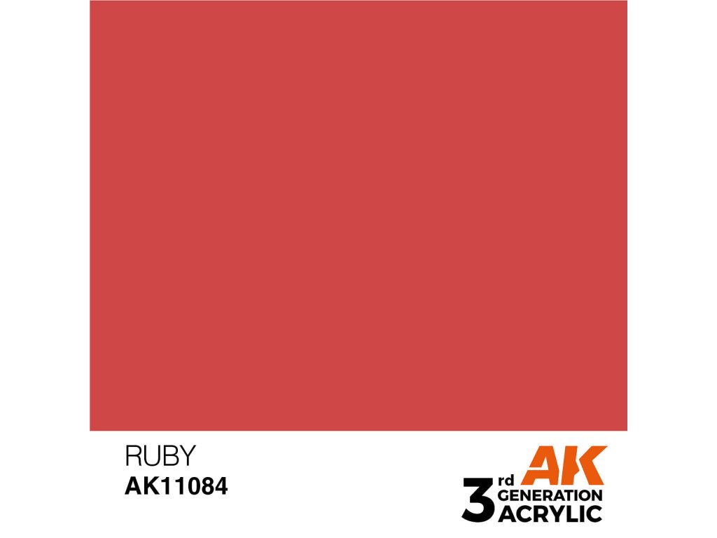 Akrylová farba Ruby od AK Interactive je vhodná na nanášanie štetcom a airbrushom. Akrylové modelárske farby 3. generácie (3Gen) sú doteraz najprepracovanejším zložením akrylových farieb. Farby všeobecnej série majú vynikajúce krytie, úžasnú priľnavosť a nové zloženie zabraňuje upchávaniu trysiek bez potreby zdĺhavého miešania farby.Dodatočné parametre