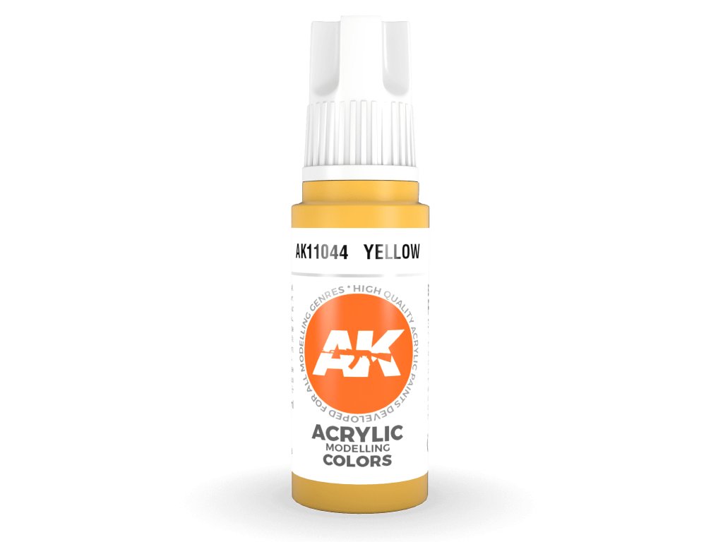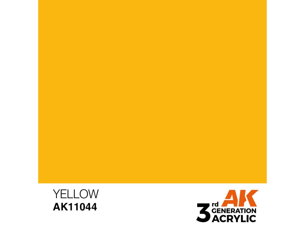 Akrylová farba Yellow od AK Interactive je vhodná na nanášanie štetcom a airbrushom. Akrylové modelárske farby 3. generácie (3Gen) sú doteraz najprepracovanejším zložením akrylových farieb. Farby radu General majú vynikajúce krytie, úžasnú priľnavosť a nové zloženie zabraňuje upchávaniu dýzy bez potreby zdĺhavého miešania farby.Dodatočné parametre
