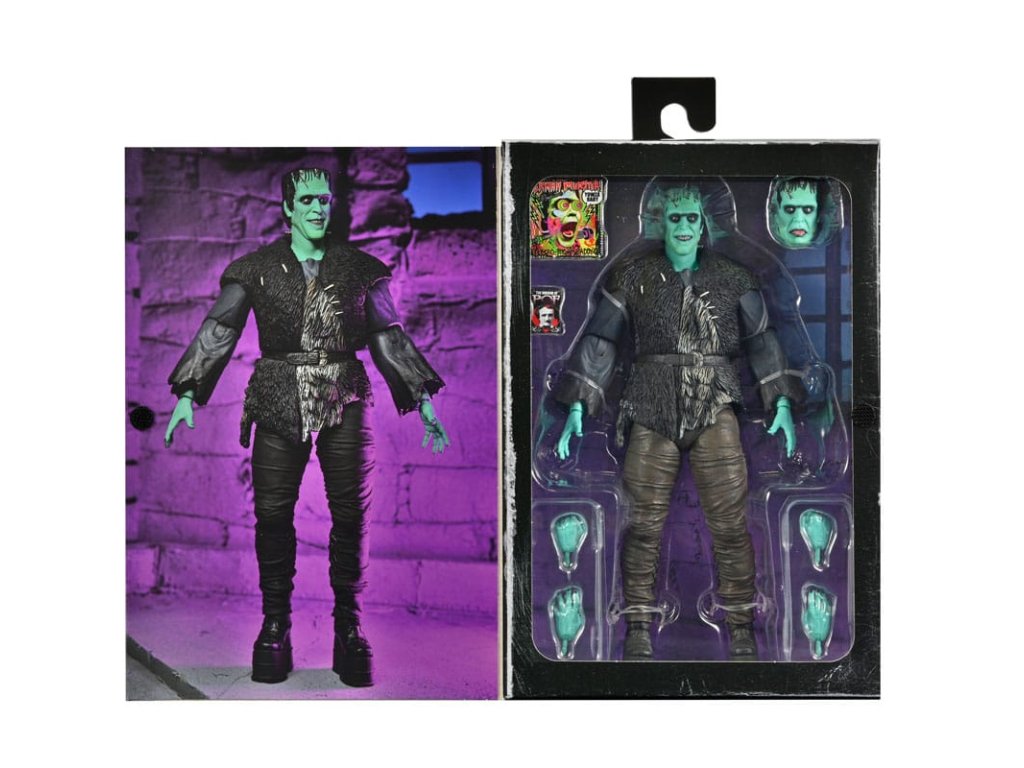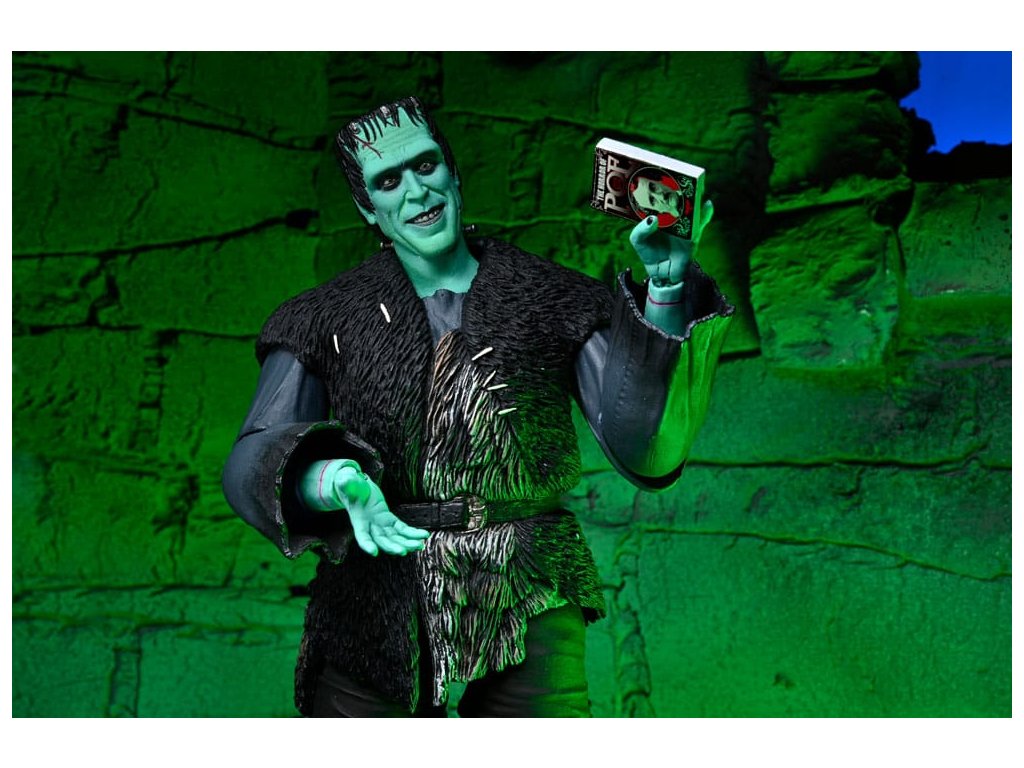 NECA predstavuje Hermana Munstera z filmu Munsters od Roba Zombieho ako ultimátnu akčnú figúrku! Toto stvorenie oživené doktorom Wolfgangom bolo omylom vytvorené mozgom komika, ale aj tak dokázalo upútať pozornosť upírky Lily. Táto akčná figúrka v mierke 7" sa dodáva s rôznymi prvkami a doplnkami priamo z filmu, ako je napríklad kópia Hermanovho elektrošoku Daddy-O! Balenie obsahuje aj knihu Edgar Allan Poe, prídavnú vymeniteľnú hlavu a ruky. Dodáva sa v baleniach s prívetivým 5-dielnym obalom s otváracou prednou chlopňou s vlastnou kresbou Daniela Horna.Dodatočné parametre