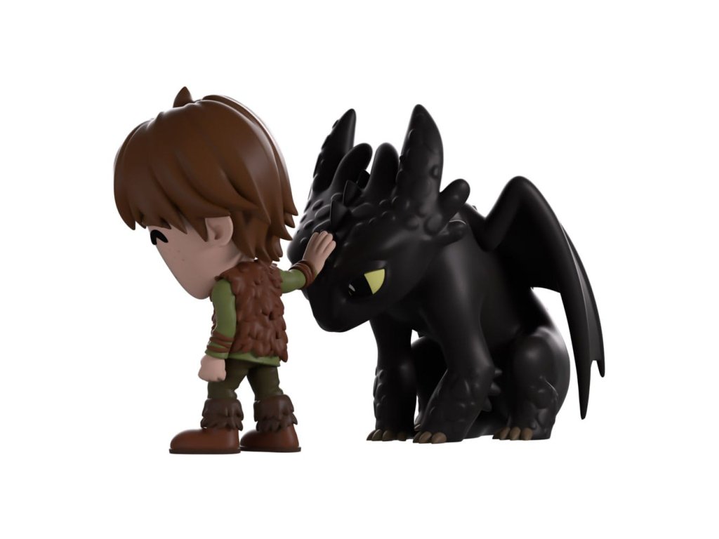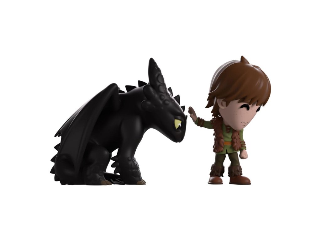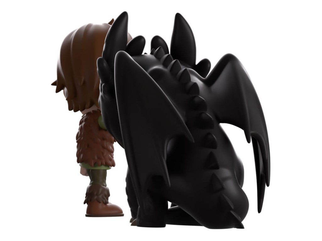 Štikút a Bezzubka prišli na Youtooz, aby vám ukázali, že pravé priateľstvo môže vyrásť aj z úplne nepriateľských začiatkov! Táto 11 cm vysoká figúrka zobrazuje Štikúta, ktorý sa opatrne naťahuje, aby pohladil Bezzubku, ktorý sa pozerá do diaľky, jeho dlhé hnedé vlasy mu padajú cez pehavú tvár a má na sebe neupravenú hnedú vestu cez zelenú tuniku s dlhým výstrihom a hnedé topánky. Keď Bezzubka opatrne skloní hlavu, jeho svetlozelené oči sa pozerajú dolu a hlavu a uši mu pokrývajú hrubé šupiny, zatiaľ čo po bokoch jeho elegantného čierneho tela sú zložené dlhé krídla. Zvonka ich batoh hľadí do slabo osvetlenej rokliny, kde sa dvojica prvýkrát stretla, zatiaľ čo vnútro je pokryté sivými dračími šupinami. Ochranný obal potom vypĺňajú hučiace modré a sivé mraky, zatiaľ čo ich postavy sú viditeľné cez veľké priehľadné okno na prednej strane batohu. Tento zberateľský predmet sa dodáva v matnom, reliéfnom, ochrannom vonkajšom obale a v plastovom chrániči vlastnej veľkosti pre maximálnu ochranu počas prepravy. O filme Ako si vycvičiť draka Ako si vycvičiť draka je animovaný film a seriál od spoločnosti Dreamworks, ktorý vznikol na základe románu Cressidy Cowelovej. Príbeh sleduje mladého Vikinga menom Štikút, ktorý sa spriatelí so záhadným drakom, ktorého pomenuje Bezzubý, a jeho cestu za zmenou zmýšľania svojho ľudu, aby ukázal, že nie všetkých drakov sa treba báť!Dodatočné parametre
