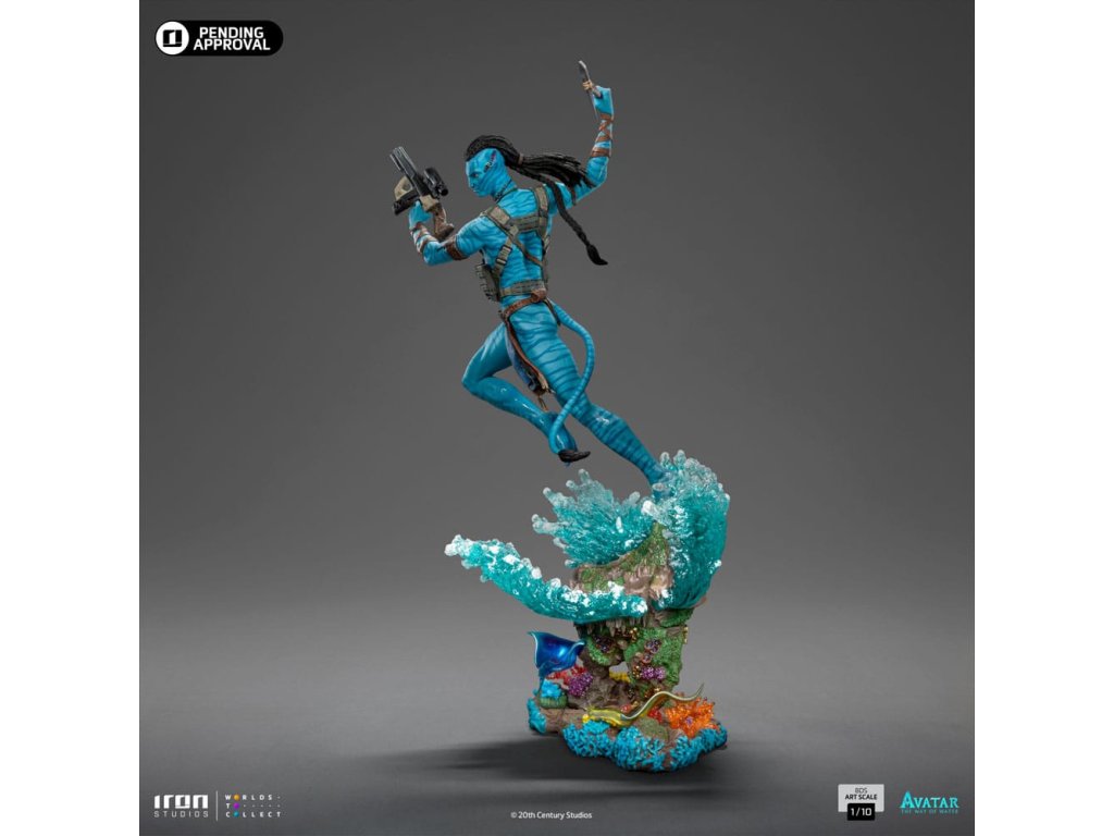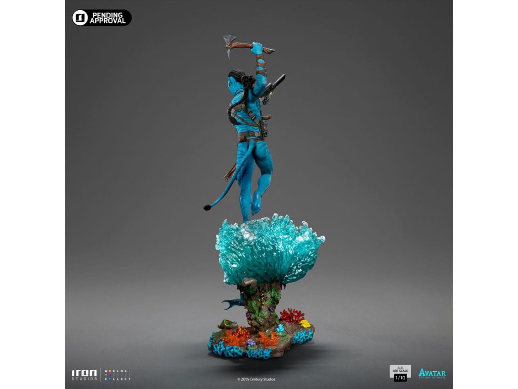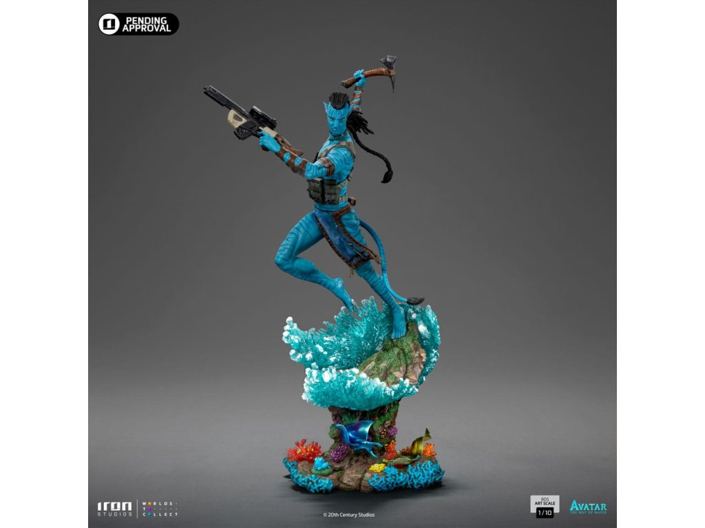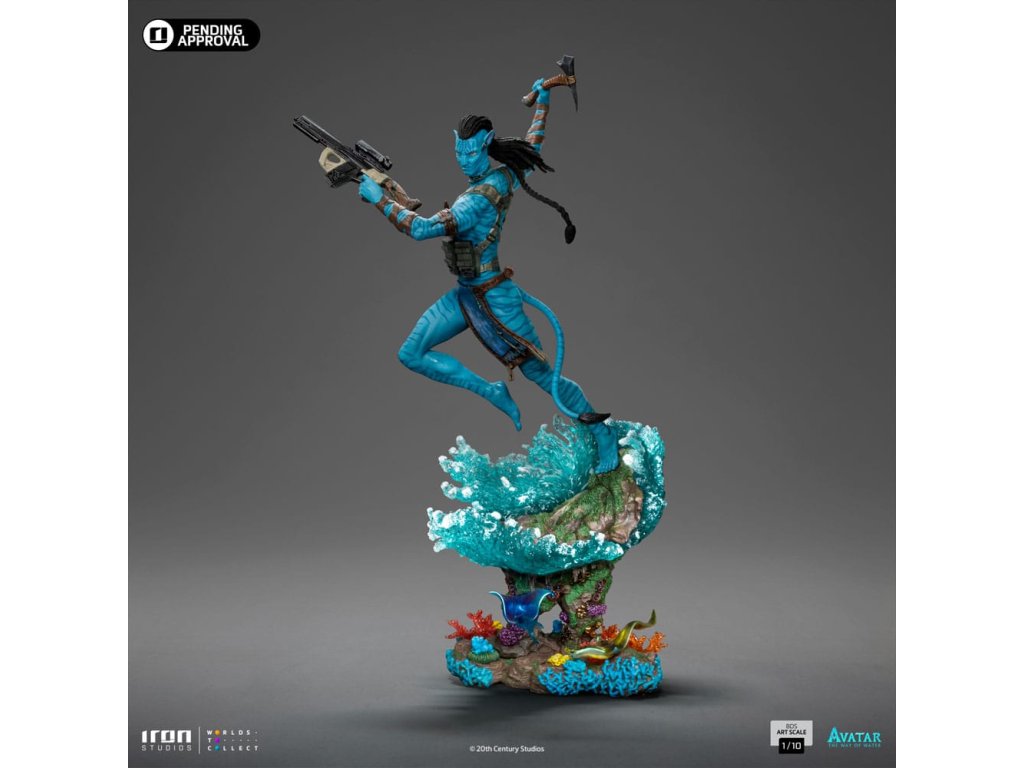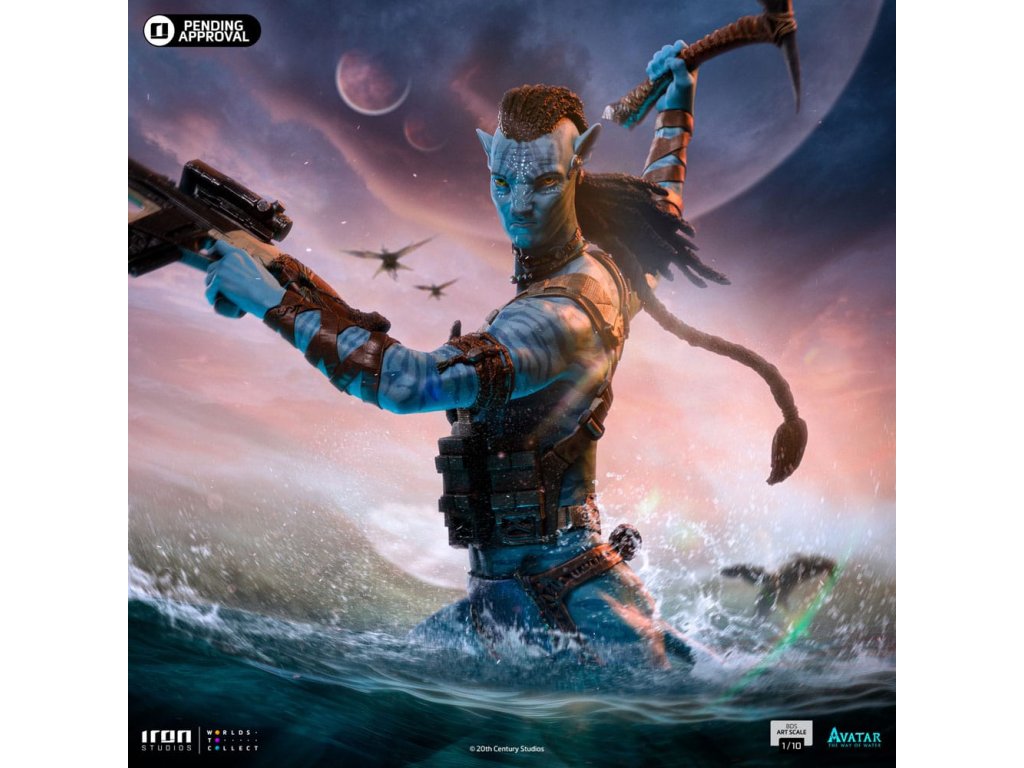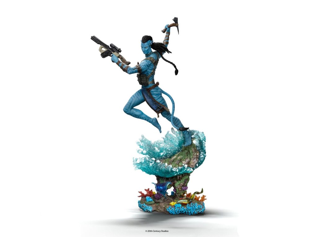 Po migrácii cez more exotickej a divokej Pandy a spojení s klanom Metkayina na súostroví sa odvážny, statočný a nebojácny vodca klanu Omaticaya ponorí do vôd oceánu a pláva medzi vegetáciou bujných farebných koralov a excentrickej morskej fauny, pripravuje sa bojovať a chrániť svoju rodinu a klan pred útočníkmi z Nebeského ľudu, na ľavom ramene nesie útočnú pušku M69, ktorá je odrazom jeho dní, keď bol ľudským námorníkom, zatiaľ čo v pravej ruke drží sekeru Na'vi! Zo sci-fi eposu, ktorého spoluautorom scenára, adaptátorom, producentom a režisérom je James Cameron, Iron Studios predstavujú sochu "Jake Sully - Avatar: Plavba vody - Art Scale 1/10" s hlavným protagonistom série Avatar, druhým dielom Iron Studios, inšpirovaným pokračovaním, ktoré bolo najziskovejším filmom roku 2022, so 4 nomináciami na Oscara, víťazom ceny za najlepšie vizuálne efekty a mnohými ďalšími oceneniami.V roku 2148, keď sa pozemské zdroje rýchlo vyčerpávali, začala Správa pre rozvoj zdrojov (R.D.A.) skúmať zásoby cenného minerálu nazývaného Unobtainium na Pandoře, jednom z mesiacov Polyféma v Alfa Centauri. Na túto ťažbu R.D.A. zamestnala bývalých vojakov a námorníkov ako žoldnierov. Pandoru obývajú Na'vi, domorodí humanoidi s modrou pokožkou, vysokí 9 až 10 metrov, s chvostom a kosťami vystuženými uhlíkovými vláknami, ktorí žijú v harmónii s prírodou a uctievajú Ewou, svoju bohyňu života. Ľudia, ktorí nemôžu dýchať v atmosfére Pandy a v dôsledku konfliktov s Na'vi, vytvorili program Avatar, v ktorom sú mentálne prepojení prostredníctvom nervových spojení s geneticky vylepšenými hybridnými telami ľudí a Na'vi. Jake Sully, ochrnutý bývalý mariňák, hľadá peniaze na operáciu, ktorá by ho mohla vyliečiť, a kvôli ich genetickej podobnosti sa vydáva na Pandoru, aby v programe nahradil svojho zosnulého brata. V jeho na'vi podobe ho zachráni Neytiri, princezná z klanu Omaticaya. Jake sa zapletie s Na'vi a dostane za úlohu presvedčiť klan, aby opustil svoj rodný strom, ktorý sa nachádza na vrchole obrovskej rezervácie Unobtainium. Zamiluje sa však do Pandy, jej kultúry a životného štýlu a pridá sa ku klanu tým, že nadviaže vzťah s Neytiri a vzbúri sa proti svojim vojenským nadriadeným. Neytiri je budúca Tsahìk, duchovná vodkyňa svojho klanu, zamiluje sa do Jakea a svoju lásku potvrdí pod stromom hlasov. Vo filme Avatar: Cesta vody, viac ako desať rokov po tom, čo Na'vi odrazili ľudskú inváziu, si Neytiri a Jake Sully ako vodca klanu Omaticaya zakladajú rodinu, pričom sa pohybujú v rozšírenom svete Pandy a v oceánoch Pandy nachádzajú nových spojencov, napríklad klan Metkayina. Všetko sa však zmení, keď sa R.D.A. opäť vráti, aby pripravila Pandoru na kolonizáciu, pretože Zem umiera a medzi nimi sú aj Rekombinanti, na'vi avatarov implantovaných s mysľou a spomienkami zosnulých mariňákov, s Rekombinantom Cornelom Milesom Quaritchom ako ich vodcom.Najmodernejšie a inovatívne techniky pri vývoji a tvorbe, doplnené talentom a tímovou prácou tímu Iron Studios, prinášajú ohromujúce výsledky viditeľné až do najmenších detailov replikovaných v soche a maľbe tejto sochy, ktorá realisticky reprodukuje črty tváre a anatómiu Avatara Na'vi, ktorého opäť hrá Sam Worthington ako Jake Sully. Odhalená vo štvrtok 30. novembra v rámci panelu na Ultra Stage na veľtrhu CCXP 2023 a následne vystavená v stánku Iron Studios, pričom celosvetové predobjednávky sú už k dispozícii, hľadajte sochu "Neytiri - Avatar: Cesta vody - umelecké meradlo 1/10", pôvodnú verziu Iron Studios z filmu, ktorá bola predtým odhalená na veľtrhu CCXP22, a mnoho ďalšieho, čo sa čoskoro objaví na sociálnych sieťach.Dodatočné parametre