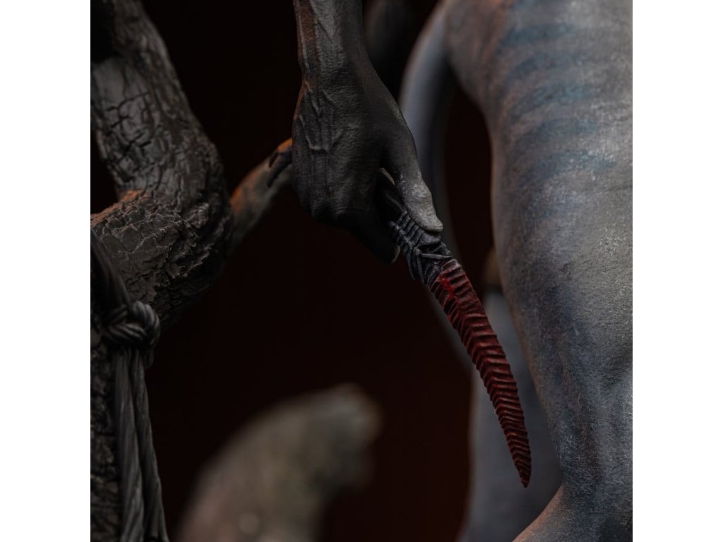 Iron Studios predstavuje Millu Quaritchovú, ktorá sa teraz nachádza v novej fáze ságy Oheň a popol. S pevným vojenským postojom, vysoko detailným vybavením a odhodlaným výrazom pôsobí Quaritch ako silná a neústupná osobnosť. Každý technický detail a textúra umocňujú pôsobivý realizmus tejto ikonickej zlodejky. Materiály a povrchová úprava: Vyrobené z polykameňa, s možnými časťami zo živice, PVC a kovu. Dokončené ručne maľovanými detailmi na zvýraznenie sochy. Rozmery: 36 x 26 x 17,5 cm Približný dátum vydania: november 2026Dodatočné parametre