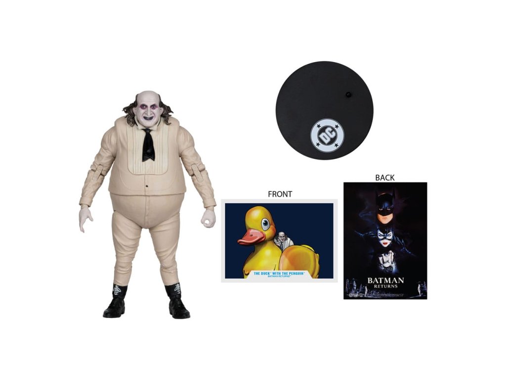 Priprav sa na divokú jazdu s Kačicou, ultimátnym vozidlom z gothamského podsvetia! Tento kultový stroj premenil Tučniak na navigáciu v kalných vodách a drsných uliciach nebezpečných oblastí Gothamu. Kačica, poháňaná šikovnou mysľou Oswalda Cobblepota, je rovnako hrozivá ako jej majiteľ. Či už sa plaví kanalizáciou, alebo križuje ulice Gothamu, tento mechanický behemot je symbolom Tučniakovej neúprosnej ctižiadosti. Toto luxusné dvojbalenie obsahuje aj figúrku Tučniaka, ktorá zachytáva šibalský vzhľad kultového gothamského zloducha - Neuveriteľne detailná 7" figúrka a vozidlo podľa kultového filmu BATMAN RETURNS z roku 1992 - Tučniak dokonale zapadne do Kačice, čo mu umožní prevziať kontrolu nad jej riadením a križovať ulice Gothamu s otáčajúcimi sa kolesami! - Balenie obsahuje vozidlo The Duck a akčnú figúrku Tučniaka, podstavec na vystavenie figúrky a zberateľskú grafickú kartu - Figúrka Tučniaka je navrhnutá s ultratenkou artikuláciou s až 22 pohyblivými časťami pre plný rozsah pózovania a hrania. Zbieraj všetky figúrky MCFARLANE TOYS™ DC MULTIVERZUM™.Dodatočné parametre
