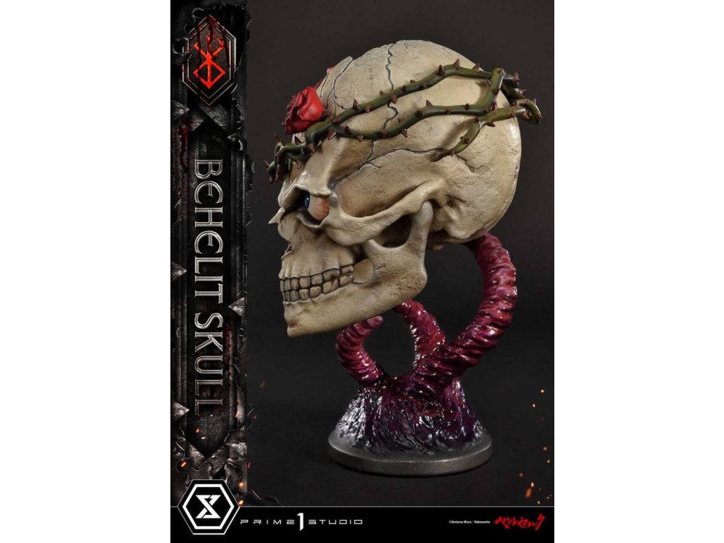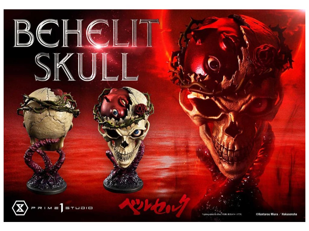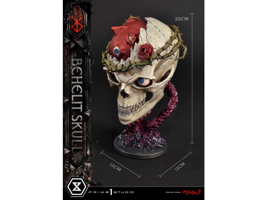 "Bojujte, vyzvite a znovu sa postavte do boja! Nikdy na to nezabudni!" - Skull Knight Prime 1 Studio s hrdosťou predstavuje najnovší prírastok do radu sôch Berserk: Leprolinu lebku v životnej veľkosti z filmu Berserk! Priamo na základe revolučného umenia Senseia Kentaro Miura prichádza Leproliska lebka. Lebka Leproli sa prvýkrát objavuje na začiatku dielu Berserk, zväzok 9, epizóda 37, kde sa prvýkrát predstavuje rytier lebky. V plnej úcte k zosnulému Senseiovi Miurovi si remeselníci zo štúdia Prime 1 dali záležať na tom, aby vytvorili dôstojný doplnok k ostatným úžasným sochám z radu Berserk. Priamo z mangy vychádza takmer 20 cm vysoká lebka Leprolina, ktorú držia nad hlavou chápadlá slizu, obklopuje ju tŕňová koruna a v jej lebečnej dutine sa ukrýva Karmínový Leprolin. Ide o dokonalé stvárnenie a spojenie rozmanitých motívov Senseia Miura. Minimálny kovový podstavec je nenápadný a dobre zapadá do témy Berserk. "Špecifikácie: - Založené na umení Kentaro Miura Sensei." Predbežný dátum vydania: apríl 2026.Dodatočné parametre