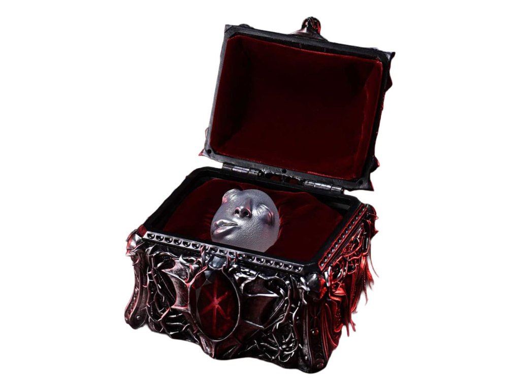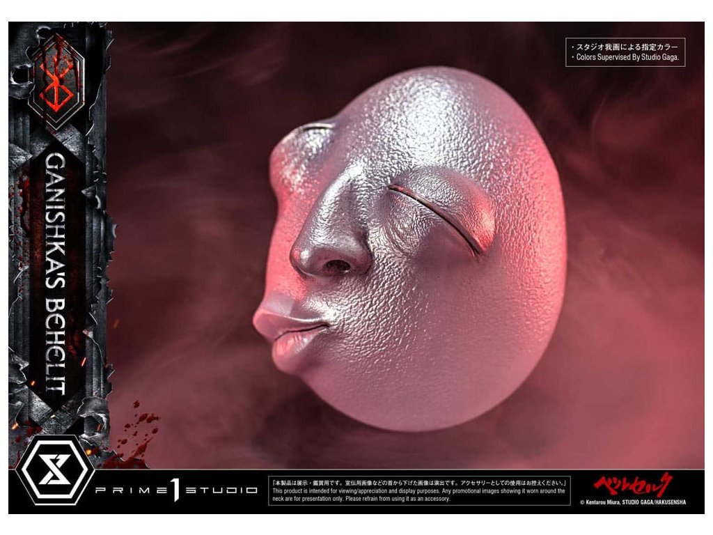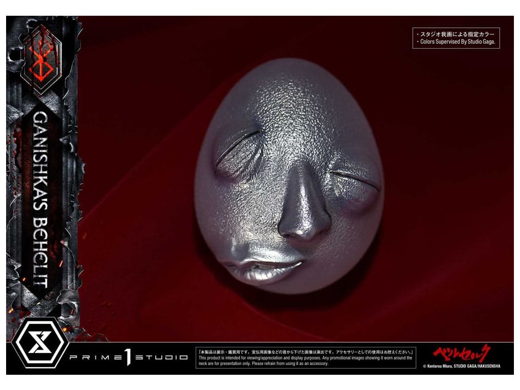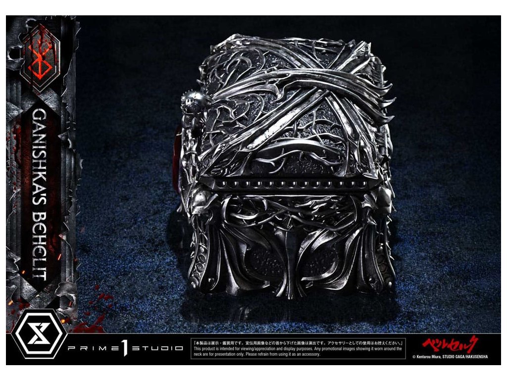 Symbol zákona príčiny a následku, ktorý splnomocnil cisára teroru. Ulita v skrinke v tvare lebky, realizovaná v životnej veľkosti. Zákon príčiny a následku - sila, ktorá ovláda tých, čo chodia po svete smrteľníkov, a dokonca aj tých, čo prebývajú v astrálnom svete. Ganishkov Behelit, symbol tohto jadra "Berserka", sa teraz pripája k sérii Masterline v životnej veľkosti. Tajomný predmet, ktorý udelil Cisárovi hrôzy moc bleskov, bol realizovaný ako zberateľský predmet v životnej veľkosti. Jeho farba - zatiaľ oficiálne nedefinovaná - dostala pod dohľadom štúdia Gaga mystickú striebornú povrchovú úpravu. Jemné deformácie a nepravidelné textúry, ako sú zobrazené v mange, sú v soche plne zachytené a zdá sa, že jej prízračná podoba v sebe slabo obsahuje prítomnosť života. Škatuľa v tvare lebky, ktorá obsahuje tento kus, je originálnym dizajnom štúdia Prime 1, inšpirovaným motívmi úzko spojenými s rytierom lebky - lebkami, mečmi a rastúcimi ružovými liánami. Vnútorný priestor je vybavený tkaninou pripomínajúcou zamat, zatiaľ čo znak obete s LED osvetlením ponúka pohľad do priepasti. Socha v nadživotnej veľkosti na počesť Behelity Ganišovej. Vyrobená s precíznosťou, aby uspokojila najhlbšie túžby vašej zbierky - Špeciálna krabička s LED osvetlením - Ganishka's BehelitLED spôsob napájania: TBD* V závislosti od konečného spôsobu napájania si pripravte batérie, USB káble alebo iné potrebné predmety. Rozmery výrobku: 8 x 7 x 8 cmŠpeciálna krabička: 14 x 20 x 18 cmPribližný dátum vydania: august 2027Dodatočné parametre