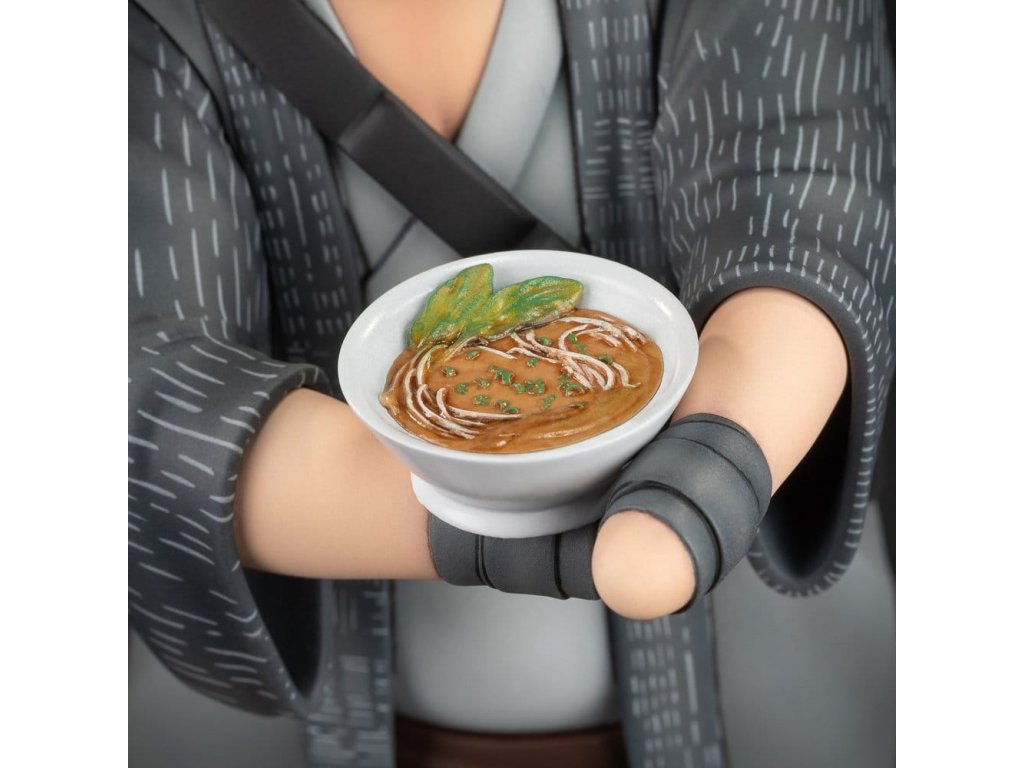 V majstrovsky spracovanom animovanom seriáli spoločnosti Netflix Blue Eye of the Samurai je Ringo výrobcom soba a kuchárom, ktorý hľadá dokonalú misku rezancov a túži po dobrodružstve. Jeho milé, veselé a odhodlané správanie z neho robí očarujúcu postavu. Táto 21 cm vysoká figúrka zachytáva Mizuovho verného učňa na vrchole blaha, ako drží misku lahodných sobov. Nepremeškajte šancu vlastniť jednu z najobľúbenejších postáv z Modrého oka samurajov!Dodatočné parametre