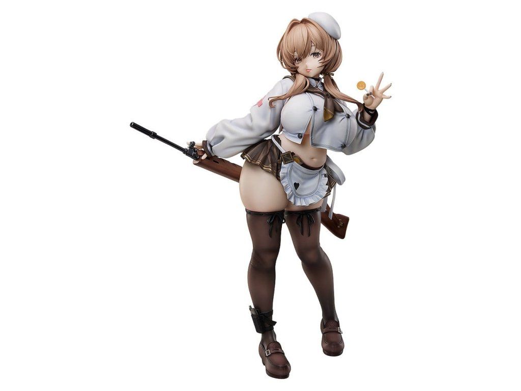 Z hry GODDESS OF VICTORY: NIKKE prichádza figúrka Bready v mierke 1/4! Členka jednotky Tetra Line Cooking Oil bola starostlivo vytvarovaná podľa návrhu postavy a oficiálnej ilustrácie, aby verne zobrazovala jej výrazné proporcie. Jemne sa prehýba v páse a hravo drží lízanku - jej koketná póza dokonale vystihuje jej pôvab ako postavičky. Osobitná pozornosť bola venovaná vizuálnym textúram vrátane oblečenia priliehajúceho k jej krivkám a priehľadnosti pančúch. Dokonca aj jej puška na žuvacie chute bola starostlivo vytvorená, čo vás ešte viac vtiahne do sveta GODDESS OF VICTORY: NIKKE. Nezabudni si do svojej zbierky pridať túto pôsobivo veľkú a detailne prepracovanú figúrku pôvabnej Bready!