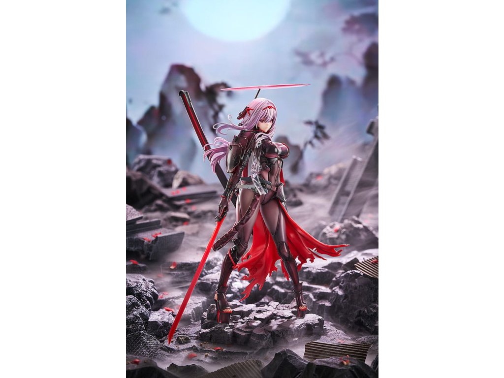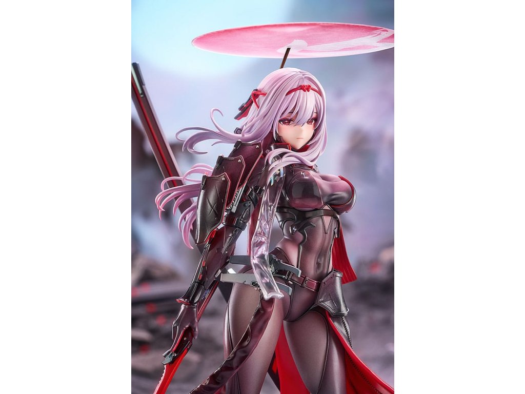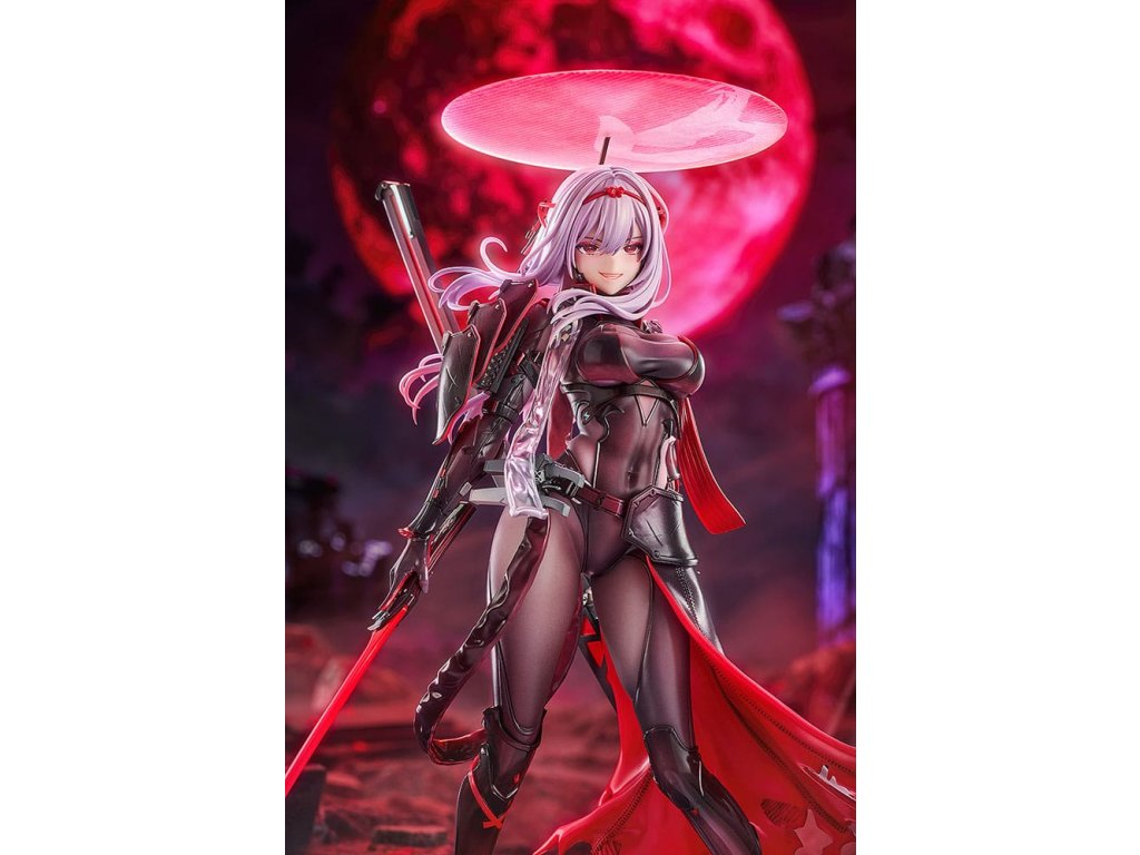 Z populárnej hry pre smartfóny "GODDESS OF VICTORY: NIKKE" prichádza figúrka Scarlet: Black Shadow v mierke 1/7! Jej čierno-červený bojový oblek bol starostlivo namaľovaný, aby vynikol kontrast medzi textúrou brnenia a látkou pod ním, čo jej dodáva chladnú, ale panovačnú prítomnosť. Splývajúci plášť a starostlivo vyrezávaná zbraň zvýrazňujú jej dôstojný postoj pripravený na boj. Značky a farby brnenia z pôvodnej ilustrácie boli verne obnovené pomocou farby vrátane jemných červených svetelných efektov, ktoré akoby vychádzali zvnútra. Figúrka má dve vymeniteľné časti tváre: výraz hanby a šialenstva, vďaka čomu ju môžete stvárniť v rôznych pútavých štýloch. Veliteľ, nezabudni si do svojej zbierky pridať figúrku Brave Scarlet: Black Shadow!Dodatočné parametre