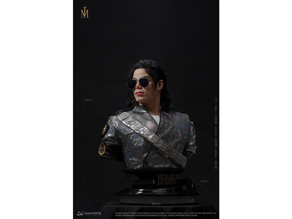 Spoločnosti Sideshow a Damtoys predstavujú Michaela Jacksona (Dangerous Tour) v životnej veľkosti. Výročná novinka DAMTOYS: Hyperrealistický portrét slávnej osobnosti Michaela Jacksona 1/1 Socha - nesmrteľná pocta ikone. Tento výrobok bol inšpirovaný oblečením, ktoré mal Michael Jackson oblečené na začiatku svojho Nebezpečného turné v Bukurešti v Rumunsku. Dúfame, že zberatelia si toto umelecké dielo zamilujú a budú ho zbierať! Vzhľadom na veľkosť tohto výrobku sa môžu účtovať dodatočné náklady na dopravu. Na určenie týchto nákladov je okrem vašej polohy potrebné poznať aj skutočnú veľkosť a hmotnosť balíka. Oboje v súčasnosti nie je známe a nemusí byť k dispozícii, kým výrobok nedorazí do nášho skladu.Dodatočné parametre