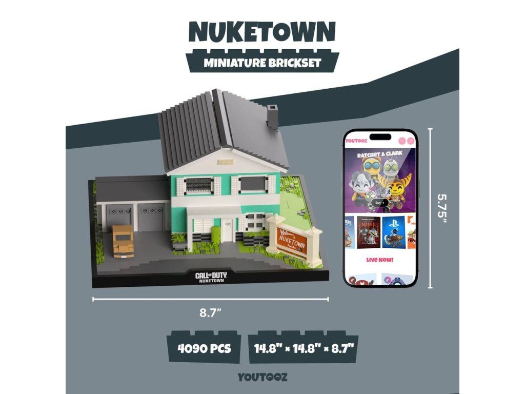 Vitajte v Nuketowne, prajem vám pekný deň! Ste pripravení dosiahnuť prestíž po jednej kocke s touto precízne spracovanou stavebnicou Nuketown z hry Call of Duty? Na ľavej strane príjazdovej cesty parkuje žlté auto a na béžovej a oranžovej tabuli na pravej strane sviežej zelenej trávy je nápis "Vitajte v meste Nuketown - Populácia 01". Okná domu s bielym rámom sú zamrežované, aby zabránili vstupu votrelcov, a pár svetlomodrých pruhov sa tiahne okolo stien k bledožltému schodisku vzadu. Táto stavebnica obsahuje 4 090 dielikov a meria 38 × 38 × 20 cm. Dodáva sa s dôkladne napísaným návodom, ktorý vám pomôže postaviť si vlastný diel Call of Duty, a je dokonalou kulisou pre váš Call of Duty Youtooz alebo pre kohokoľvek iného MVP!Dodatočné parametre