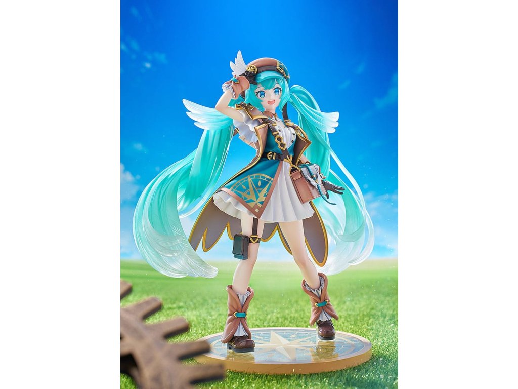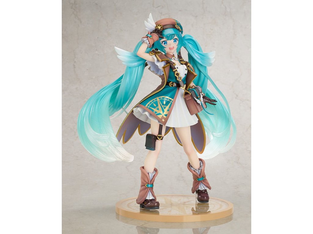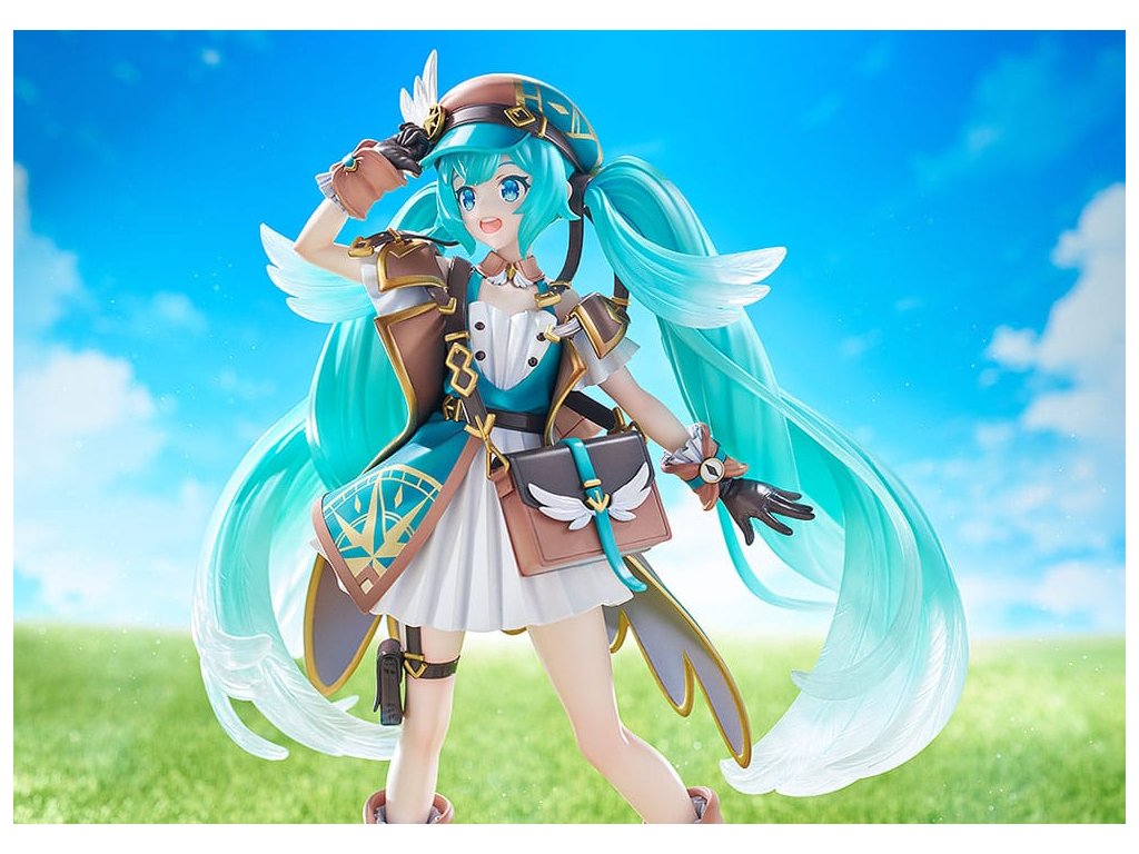 Zo série "Vocal Figure Series 01: Hatsune Miku" prichádza figúrka v mierke 1/7 založená na hlavnom vizuálnom motíve 100. výstavy venovanej nendoroidom Hatsune Miku! Táto figúrka oživuje sviežu a živú kresbu ilustrátora KEI v celej jej kráse! Jej šance v podobe dvojitého chvosta pripomínajúceho krídla sú vyrobené z priehľadných dielov pre krásny a svieži vzhľad. Nezabudni si túto figúrku Miku pridať do svojej zbierky a pripoj sa k nej na vzrušujúcom dobrodružstve, keď bude lietať voľne ako vták!