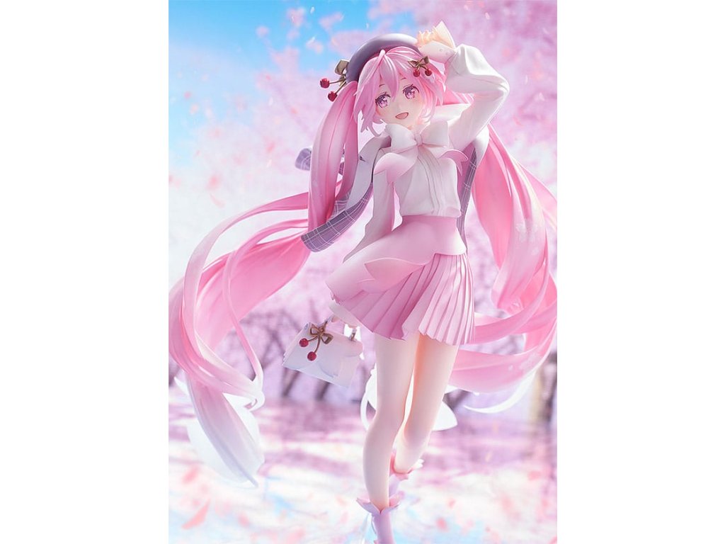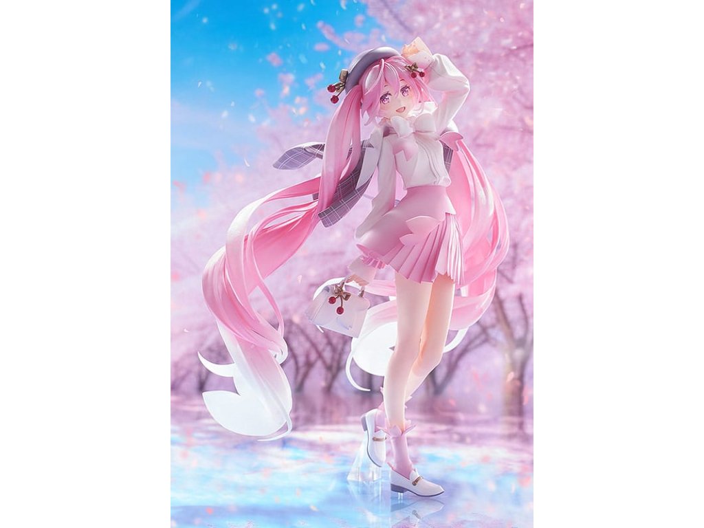 Pôjdete sa s Mikom pozrieť na rozkvitnuté čerešne? Zo série "Vocal Character Series 01: Hatsune Miku" prichádza soška Sakury Miku v mierke 1/6 podľa návrhu ilustrátora Rella! Dvojitý chvost Miku, ktorý sa chveje vo vetre, bol verne zachytený v podobe figúrky pomocou starostlivo namaľovaných priehľadných materiálov pre elegantný konečný vzhľad. Jej nezvyčajné oblečenie ideálne na jarný výlet poskytuje nový osviežujúci vzhľad. Užite si pridanie tejto rozkošnej sošky Miku, ktorá sa nevinne usmieva pri pohľade na jarné čerešne, do svojej zbierky!Dodatočné parametre