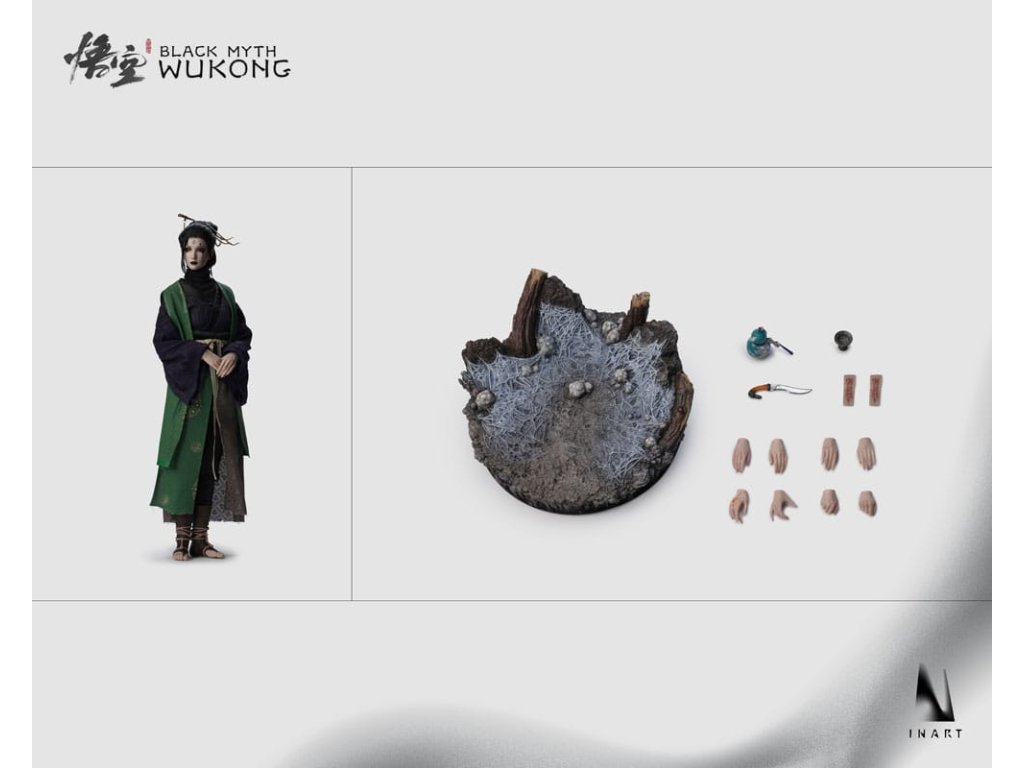 Z hry "Black Myth: Wukong" pochádza táto figúrka v mierke 1:6. Je približne 34 cm vysoký a má na sebe skutočné oblečenie. Rozmery: 34 x 21 x 19 cm - 1 plne kĺbové telo - 1 hlava s kĺbovými očami a vlasovými implantátmi (len ofina a pásiky na uši) - 8 vymeniteľných rúk - 5 doplnkov - 1 podstavec - 1 kovový podporný stojanDodatočné parametre