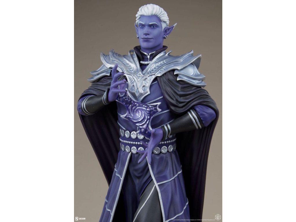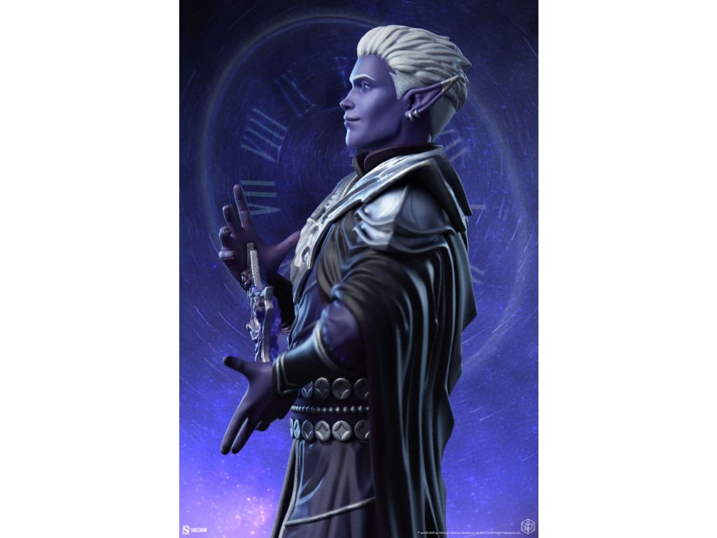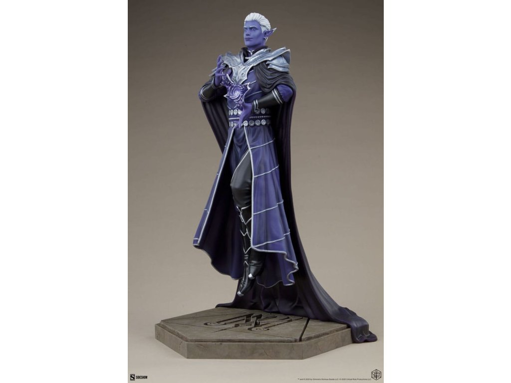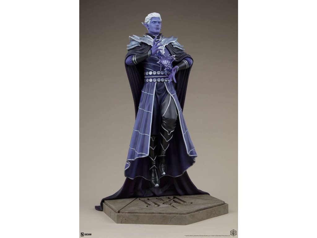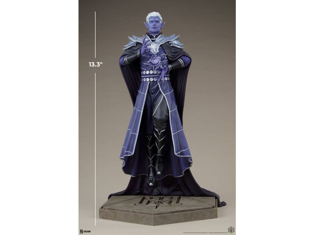 "Čas je jednou z mojich špecialít" Sideshow predstavuje sošku Essek Thelyss - Mighty Nein, novú očarujúcu figúrku v oficiálnej kolekcii Critical Role. Táto plne sochársky spracovaná trojrozmerná kolekcia má rozmery 13,29" na výšku x 8,4" na šírku x 9" na hĺbku a jej ústredným prvkom je Shadowhand dynastie Krynn. špecialista na nebezpečné neznáme, Essek Thelyss je zručný mág, ktorého arkánne schopnosti poskytujú podporu kapitánovi Mighty Neinovi na ich cestách po Wildemount. Spočiatku pôsobí záhadne a arogantne, ale jeho interakcia so skupinou mu ukáže nový druh mágie - priateľstvo a odpustenie. Socha Essek Thelyss - Mighty Nein zachytáva jeho charizmatickú sebadôveru, keď ovláda umenie dunamancy, silu potenciálu, náhody a osudu. še Essek Thelyss - Mighty Nein sa tak zrejme vznáša nad šesťuholníkovým podstavcom z falošného kameňa s vyrytým monogramom Mighty Nein, ktorý ukazuje jeho príslušnosť k skupine dobrodruhov. Na sebe má tmavý plášť s nápadným strieborným pancierom na pleciach a pod ním súpravu odevov v štýle Xhorhas, ktoré dopĺňajú jeho purpurovú pleť. Essekov atraktívny elfský portrét zobrazuje krátke biele vlasy a strieborné náušnice zvýrazňujúce jeho sebavedomý výraz. Táto kolekcia Critical Role obsahuje členov Mighty Nein, vrátane jeho budúceho partnera Caleba Widogasta, pre ešte silnejšiu stránku hrdinov zachraňujúcich svet. nenechaj to na náhodu! Uvedom si plný potenciál svojej zbierky a prines si domov sošku Essek Thelyss - Mighty Nein ešte dnes.Dodatočné parametre