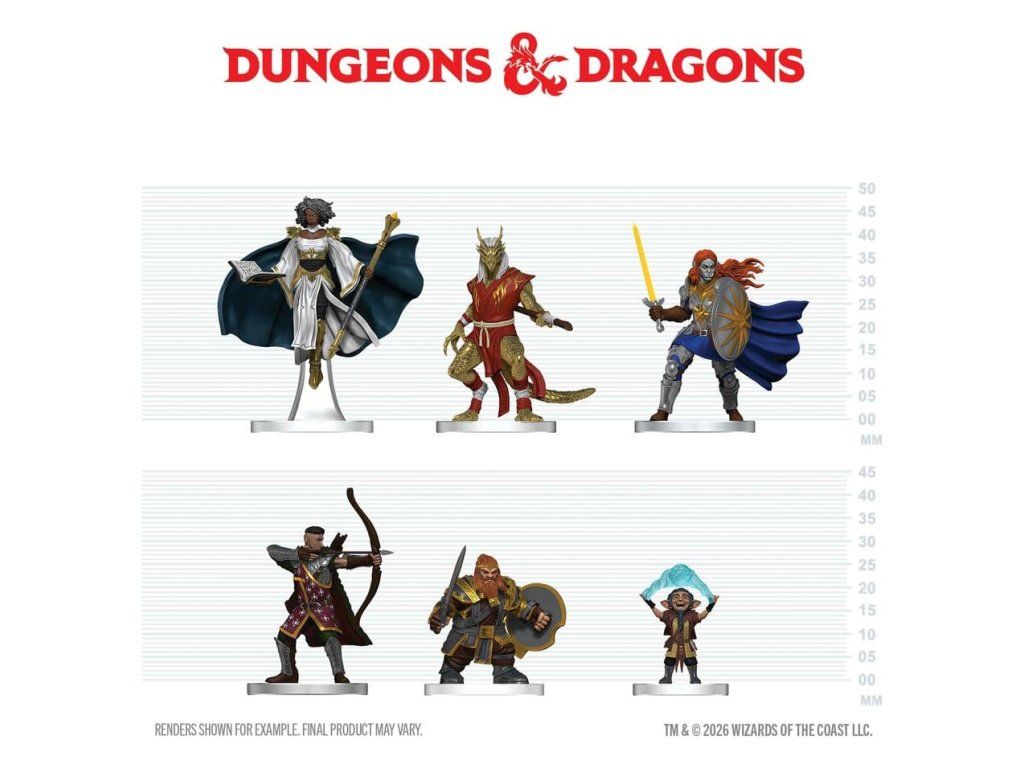 Inšpirované pútavými vyobrazeniami postáv z Príručky pre hráčov 2024 - začnite svoje dobrodružstvá s touto sadou šiestich predmaľovaných miniatúr! Či už práve začínate svoju zbierku, alebo rozbiehate novú kampaň, táto kolekcia je ideálna na to, aby ste svoje postavy z herných listov preniesli priamo na stôl.Dodatočné parametre