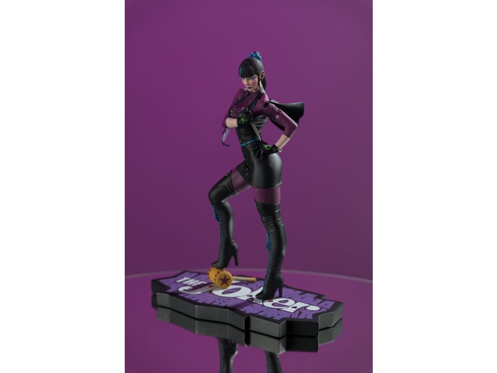 Alexis Kayeová bola nespokojná študentka, ktorej hnev na svet, ktorý sa podľa nej rúcal, z nej urobil dokonalú adeptku Jokerovej nihilistickej filozofie. Chcela svojmu hrdinovi dokázať, že nie je len posadnutá fanúšička, ale potenciálna partnerka v zločine. Joker bol spokojný, že Alexis, alebo Punchline, ako sa sama nazývala, je pripravená pomôcť mu v jeho ďalšom veľkom pláne proti Batmanovi.- Soška vznikla na základe diela Stanleyho "Artgerma" Laua.- Vysoko detailná soška je vysoká približne 7,4' (19 cm) (vrátane podstavca).- Soška je v mierke 1:10.- Vyrobená z polyresinu.- Ručne číslovaná na podstavci.- Limitovaná edícia.Dodatočné parametre