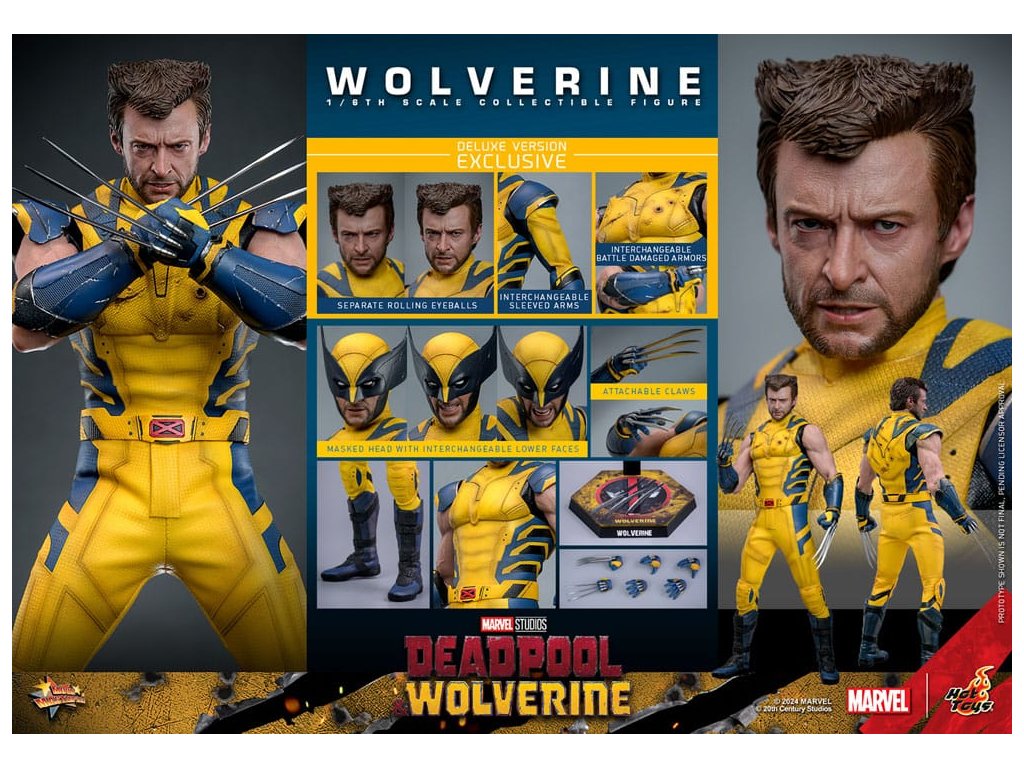 Neslávne známi nepriatelia spoločnosti Marvel sa opäť vracajú na plátno. Wolverine Hugha Jackmana sa zotavuje zo zranení, stretáva sa so zábavným Ryanom Reynoldsom a spoločne zabávajú divákov divokým dobrodružstvom plným akcie, humoru a nečakaných zvratov. Sideshow a Hot Toys predstavujú PRVÚ zberateľskú figúrku inšpirovanú očakávaným filmom Deadpool & Wolverine, zberateľskú šiestu figúrku Wolverina (Deluxe verzia), ktorá oživuje legendárny vzhľad mutanta v úžasných detailoch. Filmovo presná figúrka vychádza zo vzhľadu Wolverina stvárneného Hughom Jackmanom v pripravovanom filme a má novo vyvinutú maskovanú hlavu s vymeniteľnou spodnou časťou tváre, ktorá zobrazuje rôzne výrazy, vysoko pohyblivé svalnaté telo, ruky zo silikónového materiálu s bezšvovým dizajnom lakťov, starostlivo upravený kostým, ktorý kopíruje jeho bojový odev, niekoľko vymeniteľných rúk s pripojiteľnými čepeľovými pazúrmi pre ďalšie možnosti pózovania. Verzia deluxe obsahuje ďalšie doplnky pre jeho alternatívny vzhľad vrátane hlavy bez masky, páru vymeniteľných rukávov a súpravy poškodeného bojového brnenia na stvárnenie ďalších scén. Ukradni pazúry legendárnemu Wolverinovi s touto vysoko detailnou šiestou akčnou figúrkou Marvel! Veľkosť.