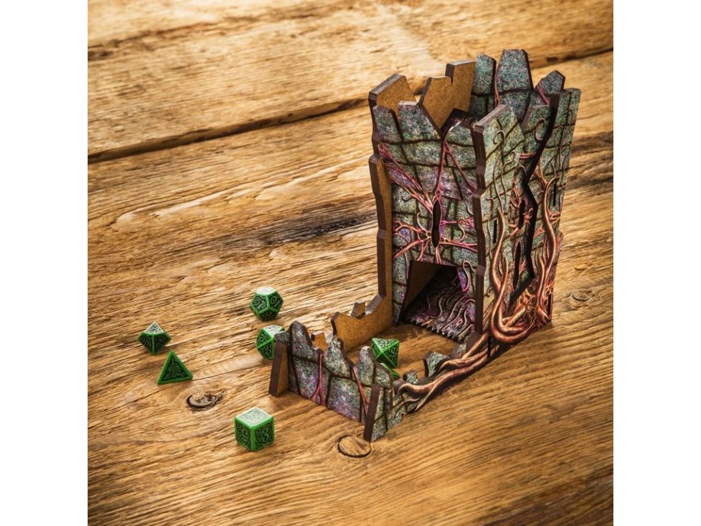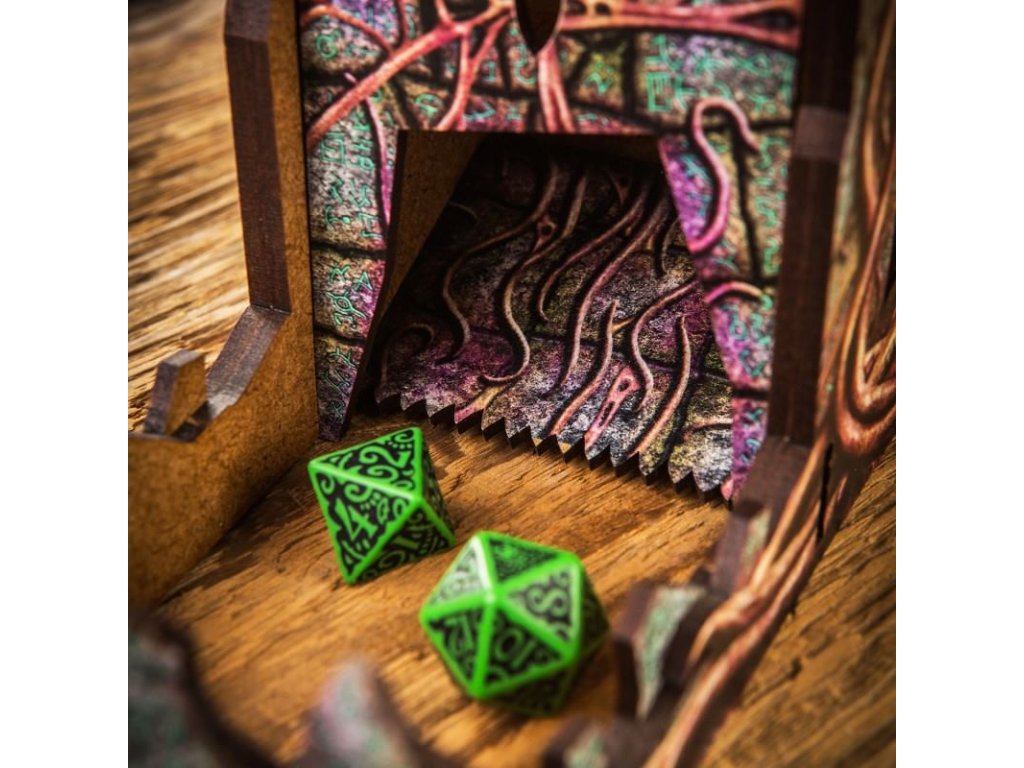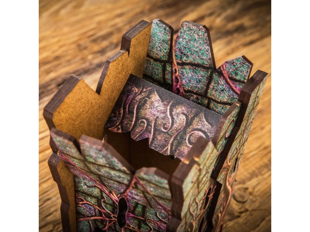 Dice Tower - Call of Cthulhu je praktický hádzač kociek v štýle hororu Cthulhu podľa diel H. P. Lovecrafta. Je vhodný tam, kde potrebujete často hádzať kockami a nemáte dostatok miesta. Veža je zdobená rúhavými ornamentmi a bola navrhnutá s poriadnou dávkou strašidelného šialenstva. Rozmery: 16 x 7,5 x 16 cm. Veža je vyrobená z kvalitného materiálu (MDF), posielame ju v rozloženom stave a na jej zostavenie nepotrebujete žiadne náradie.