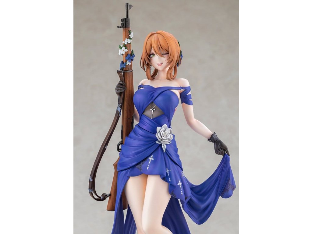 Springfield, jemná a odhodlaná manažérka kaviarne Zucchero z filmu GIRL FRONTS 2: EXILIUM, je teraz k dispozícii ako figúrka v nádherných šatách! Jej póza je definíciou elegancie a pôvabu, akoby práve vyšla z tanečnej sály. Jej roztomilé žmurkanie je tiež očarujúce! Výrazné modré šaty sú zakončené výraznými záhybmi a mierne posunutou perleťovou farbou, čo im dodáva luxusný dojem. Nezabudnite si všimnúť odvážne otvorený chrbát a elegantné telové línie okolo pása. Výrazný účes v nádhernom drdole, jemné kvetinové ozdoby a šperky, a dokonca aj štruktúra dreva a kovové kovanie pušky boli starostlivo stvárnené do najmenších detailov. Nepremeškajte príležitosť privítať ju vo svojej zbierke, veliteľ!Dodatočné parametre