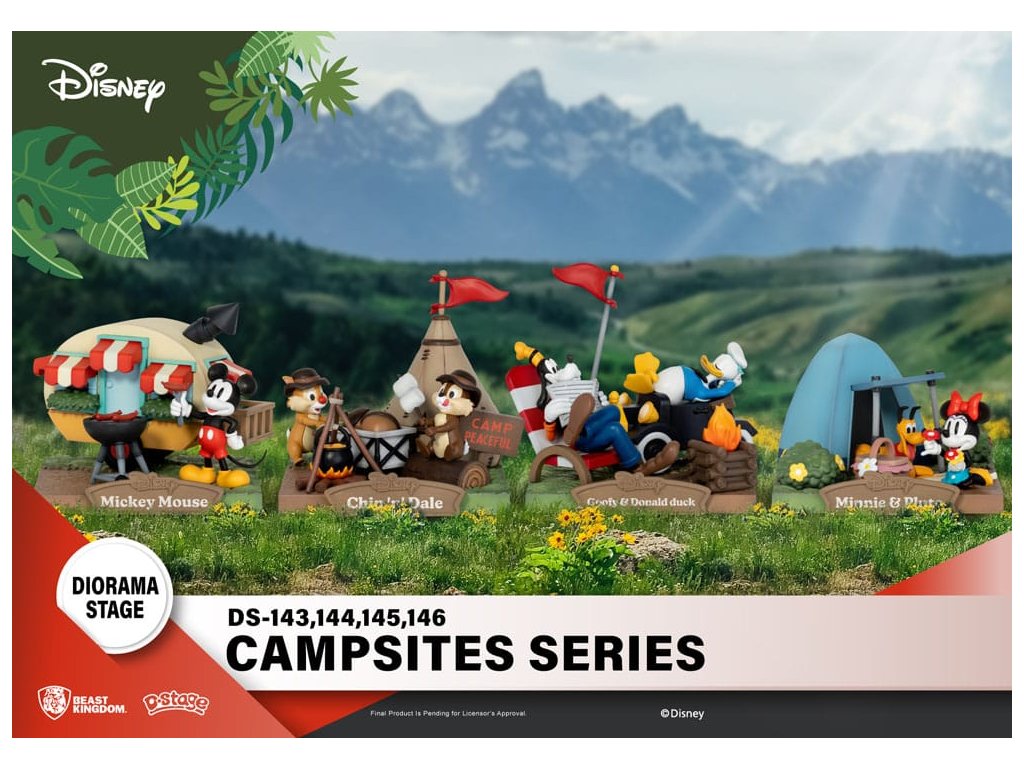 Počuli ste už o glampingu? Presne tak, zmiešajte kempovanie a glamping a získate zábavný spôsob, ako stráviť luxusný čas s priateľmi, takže si zbaľte veci, pripojte sa k Mickeymu a jeho bande a poďme na glamping! Kolekcia Beast Kingdom Expose Your Dreams, ktorá je pripravená pripojiť sa k dobrodružstvu, predstavuje novú kempingovú sériu s klasickými Disneyho postavičkami. Tieto živo navrhnuté zberateľské predmety zobrazujú postavičky v rôznych roztomilých pózach, ktoré oživujú 360-stupňovú scénu kempovania. Séria pozostáva zo štyroch štýlov a každá postavička je vybavená iným kempingovým vybavením. tentoraz Mickey riadi gril a na kempovanie si priváža luxusný karavan. Minnie a Pluto si prinášajú roztomilé a malé stany spolu s piknikovými podložkami, ktoré vytvárajú útulnú a príjemnú atmosféru v kempe. Chip a Dale sú perfektní pre super roztomilý stan v mongolskom štýle a Dale dokonca prináša dve veľké šišky na ozdobu. Chip dychtivo sleduje marshmallows v rukách, pripravený opekať si ich! Goofy a Kačer Donald si užívajú chladný vánok a atmosféru kempovania. celú sadu zberateľských predmetov možno kombinovať a vytvoriť si tak skvelý kemp! Fanúšikovia, ktorí milujú Disney a luxusné kempovanie, sa môžu radovať; toto je jedinečná kolekcia, ktorú si toto leto nesmiete nechať ujsť! Zozbieraj všetky sady a vytvor si celú scénu ešte dnes!Dodatočné parametre