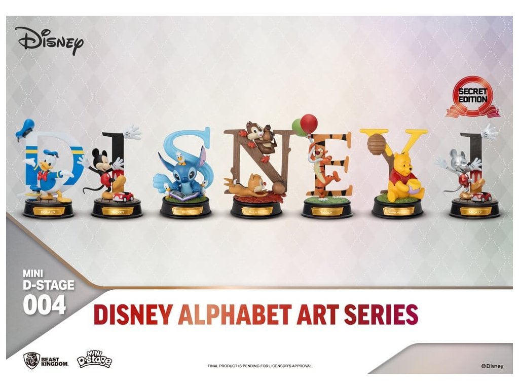 Oslavy 100 rokov Disneyho ohromenia pokračujú Non-Stop zábavou! V rámci MDS Beast Kingdom sa fanúšikovia opäť vydajú na ďalšiu rozkošnú cestu, ktorá oživí známe Disneyho postavičky v miniatúre. Po úspechu série Pixar Art Letters uvádza "značka zábavných zážitkov" kolekciu Disney Art Letters. Každé písmeno v "DISNEY" predstavuje známu postavu, ktorá symbolizuje dané písmeno. Séria obsahuje šesť klasických postáv: "D" zobrazuje energického káčera Donalda v jeho klasickom námorníckom obleku, "I" predstavuje milého maskota Mickeyho Mousea s jeho ikonickými bielymi rukavicami, "S" predstavuje mimozemský experiment 626, Stitcha, ktorý si užíva svoju obľúbenú knihu, "N" predstavuje obľúbenú veveričku Chipa a Dalea, "E" predstavuje Tigra, ktorý sa preslávil lietaním s balónmi, a napokon "Y" predstavuje roztomilého Medvedíka Pú, ktorý si pochutnáva na lahodnom mede. Vďaka starostlivému dizajnu sa uistite, že ste nazbierali všetky figúrky a pripojili sa k tejto jedinečnej oslave s Kráľovstvom šeliem a spoločnosťou Disney ešte dnes! Každá minifigúrka z PVC meria na výšku 10 cm. Približný dátum vydania: júl 2026Dodatočné parametre