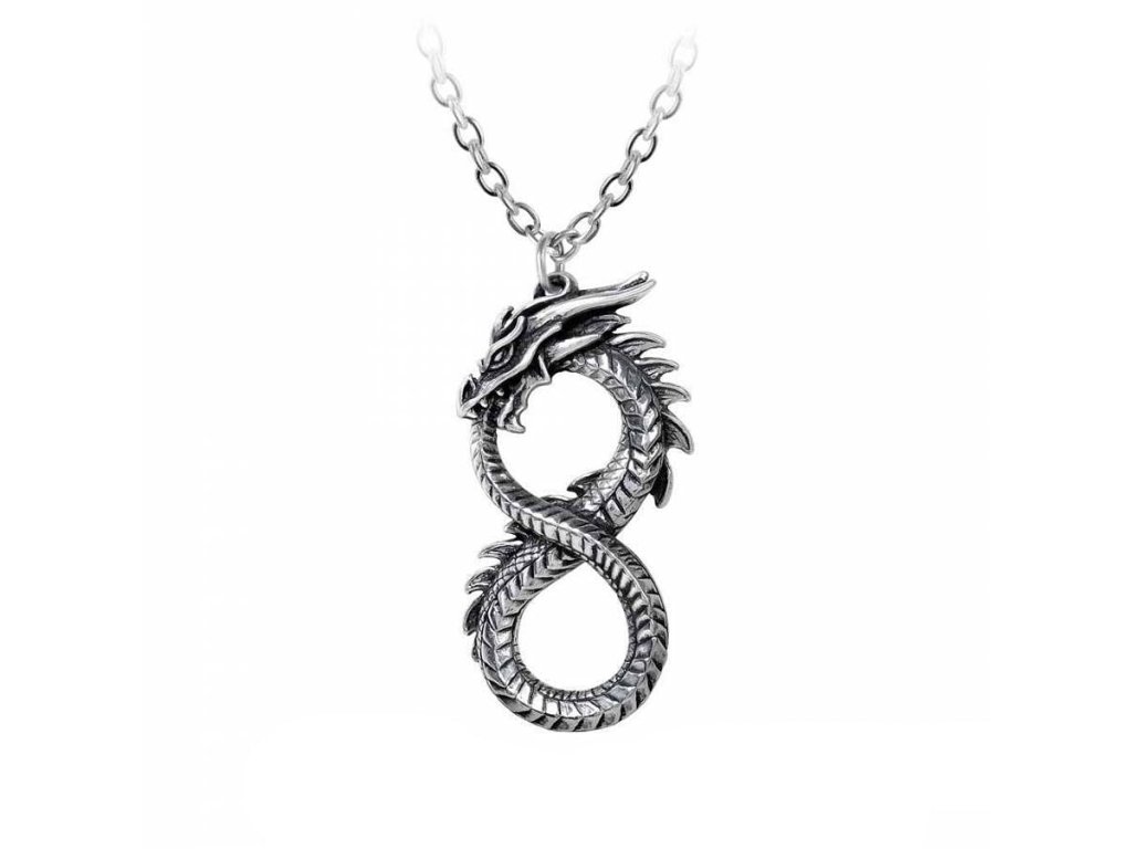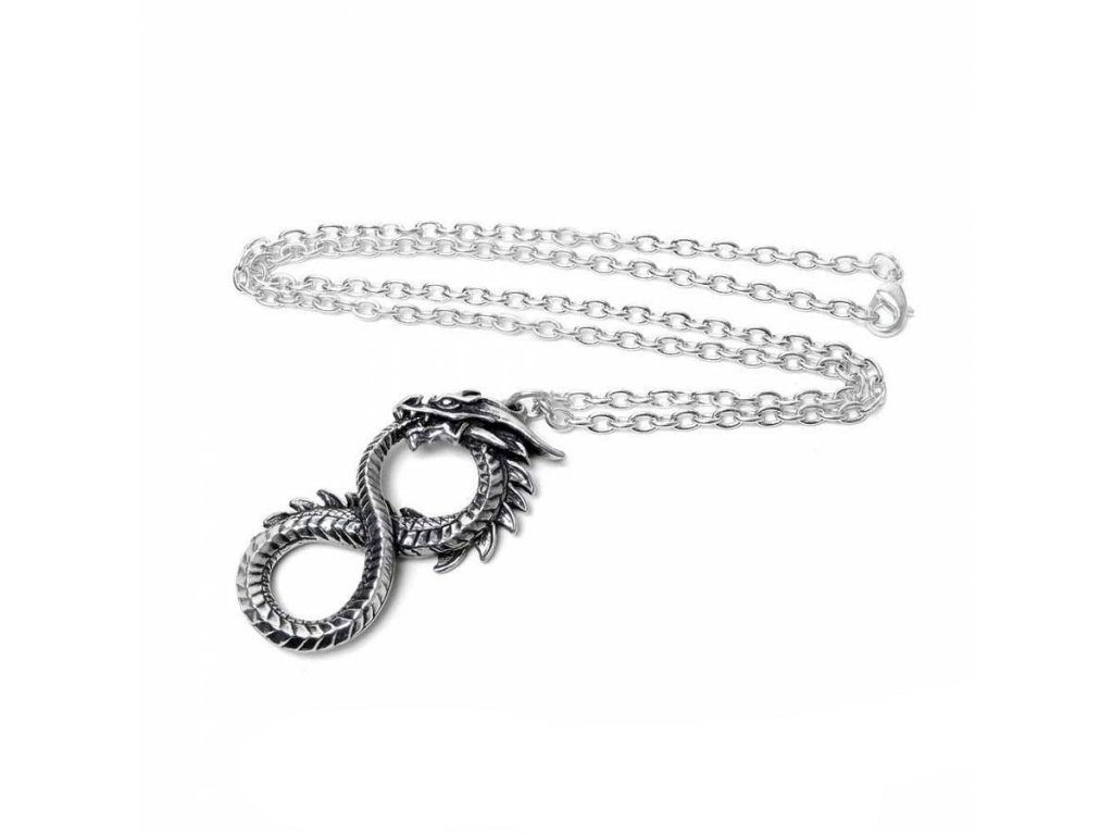 Cínový náhrdelník v podobe draka požierajúceho svoj chvost je symbolom nekonečna. Súčasťou balenia je retiazka dlhá 54 cm.Dodatočné parametre