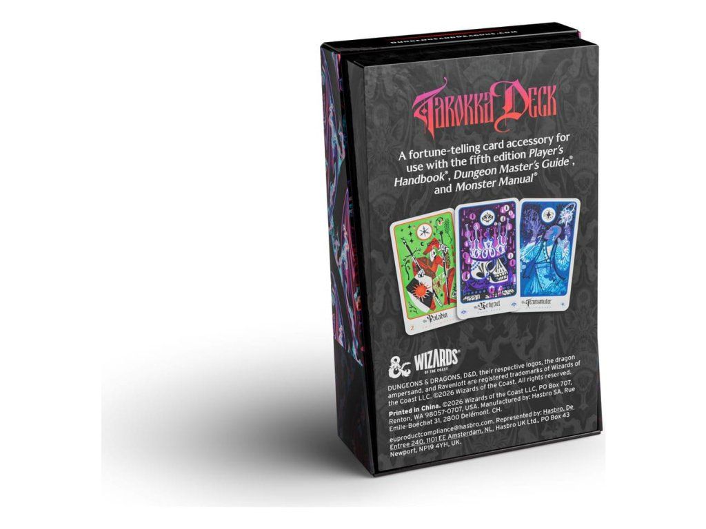 Budú vaši hráči obdarení šťastím, alebo ich postihne temnota a hrôza? Predpovedzte, čo prinesie budúcnosť s týmto mystickým, plne ilustrovaným balíčkom Tarokka, ktorý môže naznačiť stretnutia s Temnými pánmi alebo dokonca vytvoriť úplne nové Domény hrôzy. Obsah: 54 kariet Tarokka, návod na použitie