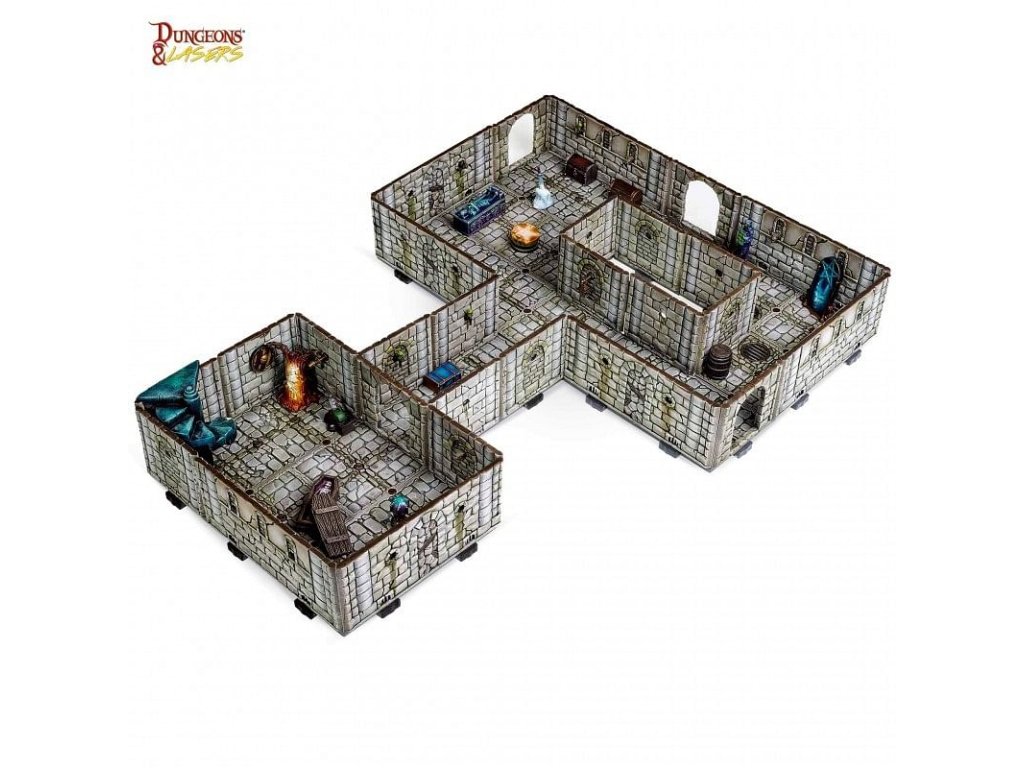 Štartovacia sada Dungeons & Lasers: Fantasy poskytuje nádherne spracované miestnosti a dieliky dungeonov, ktoré ľahko vytvoria úžasnú atmosféru pre vašich hráčov! Dungeons & Lasers: Fantasy Starter Set je kompatibilný s Dungeons & Dragons 5E alebo akoukoľvek inou rolovou hrou. Súčasťou balenia je anglický manuál s návodom na zostavenie a vymaľovanie. 6x dlhá podlaha 9x podlaha 8x dlhá stena 15x stena 4x dvere 40x podlahové klipy 44x nástenné klipy 64x kolíky 26x vertikálne klipy 70x prispôsobiteľné kúskyDodatočné parametre