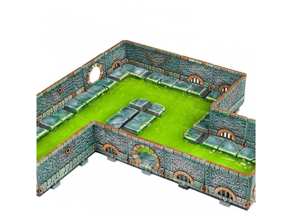 Súprava Dungeons & Lasers: Sewers poskytuje nádherne spracované miestnosti a dieliky, ktoré ľahko vytvoria úžasnú atmosféru pre vašich hráčov! Dungeons & Lasers: Sewers Set je kompatibilný s Dungeons & Dragons 5E alebo akoukoľvek inou rolovou hrou. Súčasťou je anglický manuál s návodom na zostavenie a vymaľovanie. 1x Nubble mini na 50 mm scénickom podstavci 4x Plná vodná dlaždica (číry plast) 4x Plná vodná polodlažba (číry plast) 8x Dlhý chodník (číry plast) 4x Chodník v tvare L (číry plast) 4x Krátky chodník (číry plast) 4x Roh (číry plast) 8x Dlhá obojstranná stena 12x Obojstranná stena 4x Dvere 84x Rôzne klipy 64x KolíkyDodatočné parametre