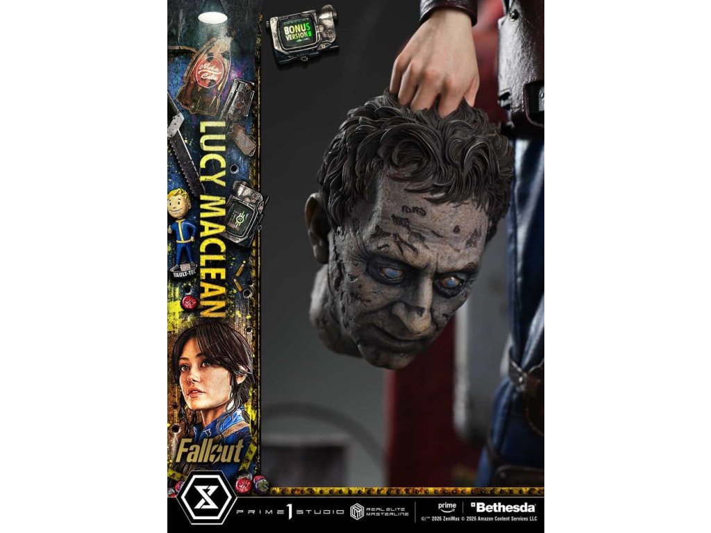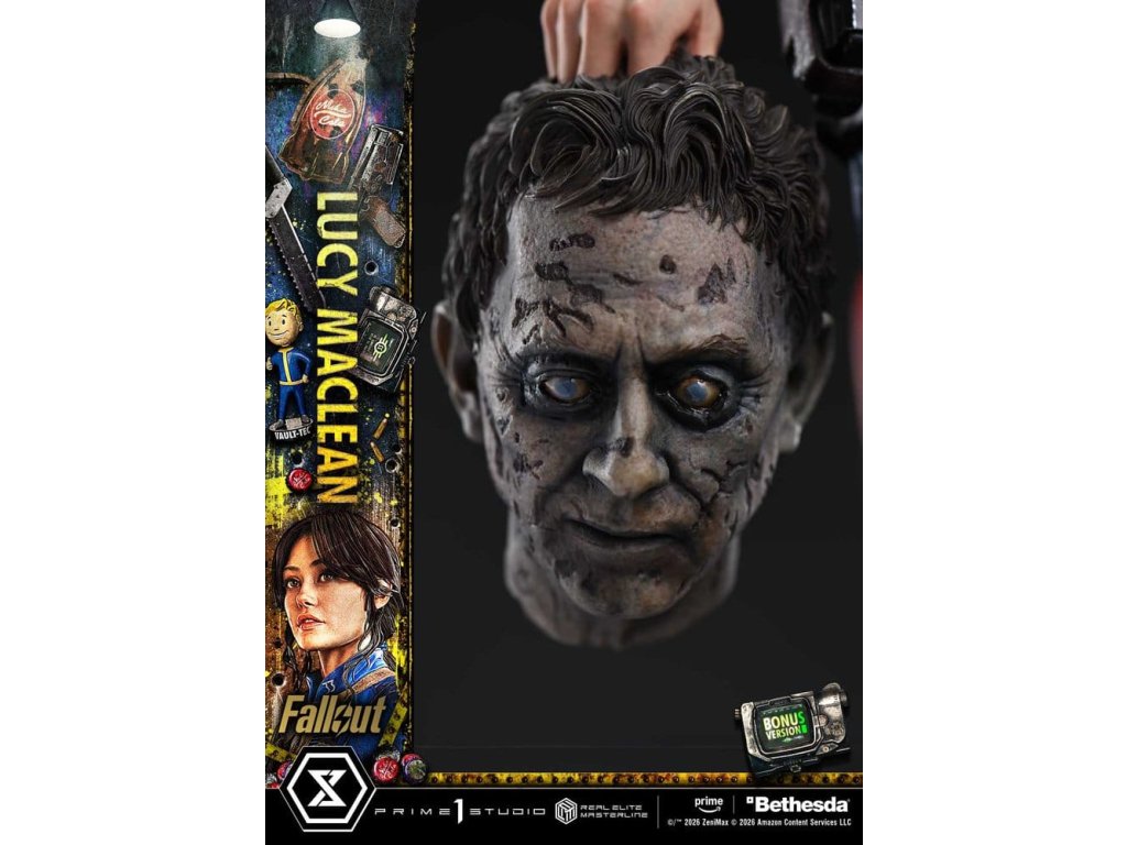 "Okey Dokey." Jej búrlivá cesta, hrdinka knihy Vault 33, je zobrazená v mierke 1/4. "Fallout" sa odohráva 200 rokov po jadrovej vojne a spája príbehy troch hlavných hrdinov. Z dramatickej série, ktorá sa nesie v ostrom satirickom duchu pôvodnej hry, ožíva Lucy MacLean v sérii Real Elite Masterline. Lucy MacLeanová sa rozhodla vstúpiť do Pustatiny, kde vládne násilie a chaos, aby zachránila svojho otca uneseného lupičmi, a jej búrlivá cesta je zachytená v mierke 1/4. Jej pomalé, opatrné tempo, ktorým pozoruje okolie, vystihuje jej optimistickú povahu. Jej vzpriamený postoj, ovplyvnený výchovou v jej dome, trezore 33, tiež hovorí o jej silnej disciplíne a čestnosti. Jej portrét, vytvorený s plným využitím našich sochárskych a maliarskych zručností, zachytáva podobu Elly Purnell. Jemné tóny pleti, lesklé pery a jej zámerný pohľad sú starostlivo vykonané. Táto kombinácia zachytáva nielen štruktúru materiálu, ale aj známky používania a starnutia. Pip-Boy má funkciu LED svetla. K dispozícii sú aj tri vymeniteľné pravé ruky: 10 mm pištoľ, rozparovač a balík látky - každá výmena vyvolá spomienku na nezabudnuteľnú scénu. Rozbitý automat na Nuka-Colu. Usmievajúci sa Vault Boy. Radoach tajne za ňou. Špeciálne navrhnutá základňa stohuje povrch pustatiny s bránou Vaultu, čím sa stretávajú ikonické prvky série. Vychutnajte si ju spolu s významom, ktorý sa skrýva za posolstvom "NEZABUDNITE NA HLAVU". Táto bonusová edícia obsahuje aj dodatočnú pravú ruku držiacu Wilzigovu hlavu. Jej zakalené oči a hnijúca koža naznačujú osud, ktorý ju čaká na jej ďalšej ceste. Spolu s Ghoulom a pripravovaným Maxom táto socha zobrazuje drsnú realitu Pustatiny ako ucelená kolekcia. Špecifikácie: - základňa s motívom Fallout - 3 x vymeniteľná pravá ruka (10mm pištoľ, chirurgický trhač, látkový balíček) - 2 x vymeniteľné puzdro (prázdne, s 10mm pištoľou) - LED osvetlenie (Pip-Boy) - 1 x vymeniteľná pravá ruka (hlava Dr. Wilziga) [BONUSOVÁ POLOŽKA] - limitovaná edícia: 400 LED Spôsob napájania: TBD* Pripravte si batérie, USB káble alebo iné potrebné predmety v závislosti od konečného spôsobu napájania.Dodatočné parametre
