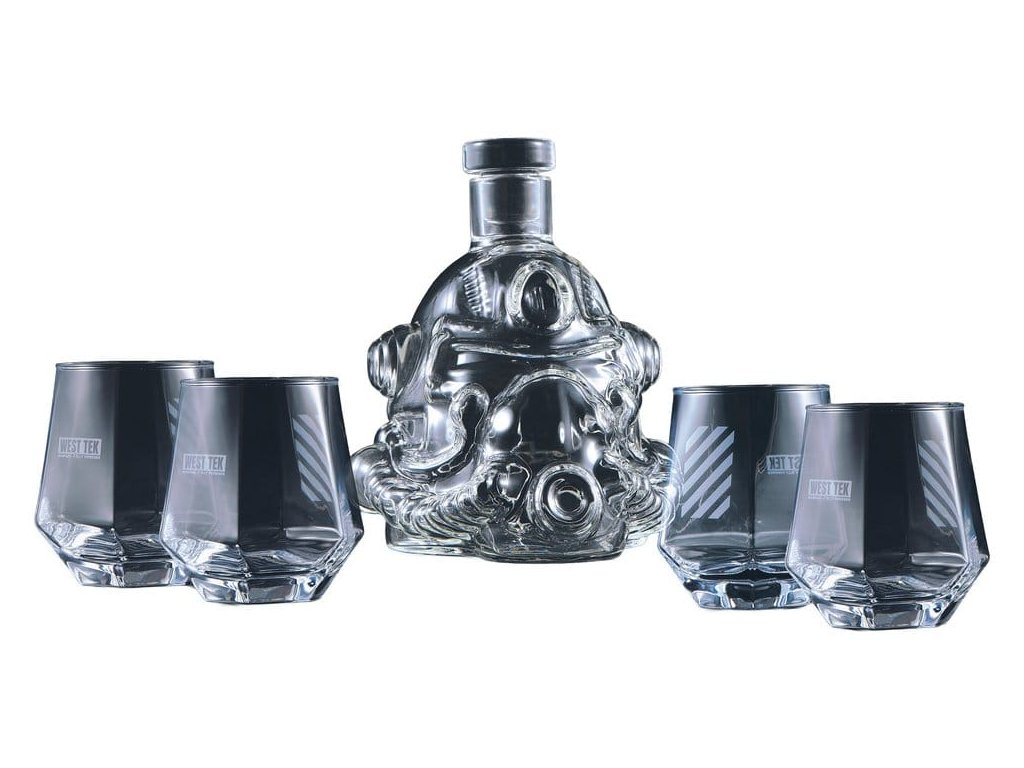 Spoločnosť Ukonic predstavuje túto špeciálnu sadu karáterov Fallout. Urobte z tejto rafinovanej sady súčasť svojho domova alebo baru u priateľov. Je to vynikajúci sviatočný darček alebo užitočný zberateľský predmet, ktorý môžete pridať na svoju špeciálnu narodeninovú oslavu. Obsahuje 1 karafu a 4 poháre. Rozmery: Rozmery sú uvedené v tabuľke 1.Dodatočné parametre