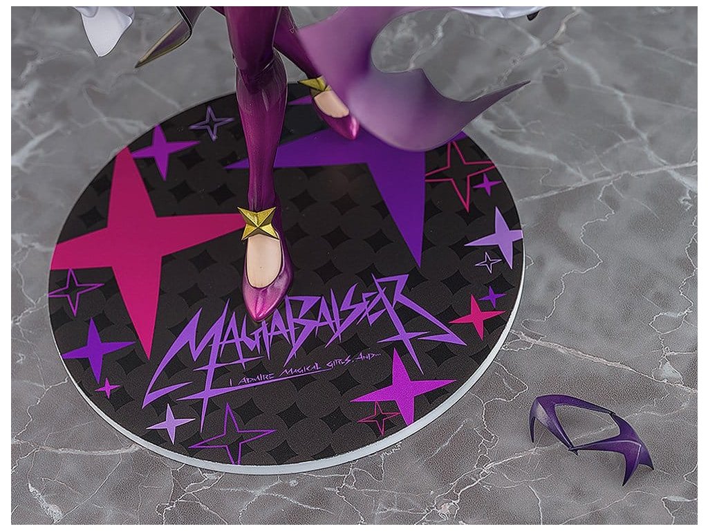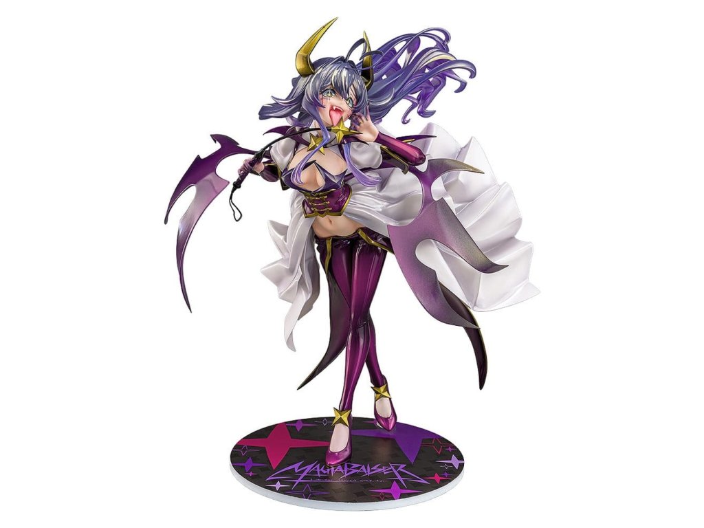 Z televízneho anime "Gushing Over Magical Girls" bola postava Magia Baiser premenená na figúrku do zásuvky. Je zobrazená vo svojej druhej podobe, ktorá sa prejavila počas jej boja s lordom Enormom. Jej výraz - vyplazený jazyk a atmosféra sadistického zastrašovania - bol realizovaný prostredníctvom odvážneho, fetišistického modelovania a maľovania. Jej dramatický splývavý oblek je navrhnutý so siluetou, ktorá kombinuje jemnosť aj ostrosť, čím sa dosiahla exkluzívna rovnováha medzi odhaľovaním a zakrývaním. Táto hra prirodzene priťahuje pozornosť diváka a vytvára dekadentnú atmosféru plnú tabu. Jej fialové vlasy využívajú priehľadné časti spolu s transparentným lakom na vlasy a gradientmi, čo evokuje hĺbku a ľahkosť, akoby sa šírili priestorom. Perleťové farby sú hojne použité na jej zlatom rohu a ozdobách, čím im dodávajú lesklú štruktúru, ktorá umocňuje jej dravú prítomnosť a zmyselný pôvab. K dispozícii je aj pridaná časť tváre so záhadným, sebavedomým úsmevom, ktorá umožňuje stvárniť rôzne aspekty kúzla Magia Baiser. Niektoré časti sú tiež odnímateľné, takže si ju môžete vystaviť v preferovanom štýle. *Odporúča sa od 18 rokov.Dodatočné parametre