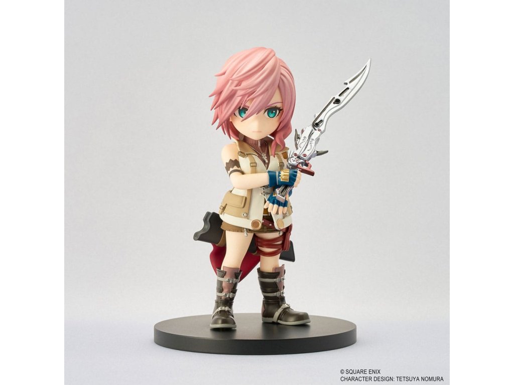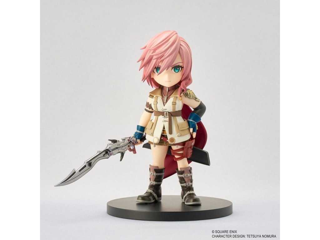 Roztomilá, ale elegantná, "roztomilo štylizovaná" figúrka blesku inšpirovaná jej výzorom v hre FINAL FANTASY XIII. Prídavné diely umožňujú stvárniť ju, ako drží svoju ikonickú šabľu Blazefire v podobe meča alebo pištole. Veľkosť figúrky: 11 × 5 × 4 cmDodatočné parametre