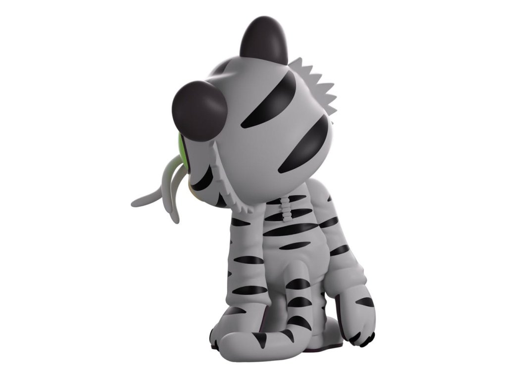 "Jeho obľúbený" Videli ste to? Počkajte, kam sa podel?! Je späť!! Rýchlo, drž sa ďalej od tmy, lebo nás dostane! Naklonené na stranu, vysoké 5,1 centimetra, s párom obrovských asymetrických zelených a modrých očí, ktoré sa pozerajú rôznymi smermi, na bledom ňufáku pod dlhou skrútenou bradou sa mu tiahne nepokojný úsmev plný ostrých zubov. Z temena hlavy mu vyčnievajú tmavé okrúhle uši a svetlosivé telo mu značia čierne pruhy, voľné ruky mu voľne visia po oboch stranách, na nohách má položené fialové vankúšiky labiek, zatiaľ čo z chrbta sa mu tiahne hrubý chvost. Vonkajšok ich schránky osvetľuje jediný tlmený reflektor v tmavej miestnosti. Zatiaľ čo vnútro je sústredené okolo fialovo-žltého cirkusového stanu s dlhými závesmi a radmi svetiel, ten potom pokračuje na ochranný obal, kde je ich postavu vidieť cez veľké priehľadné okno na prednej strane obalu. Tento zberateľský predmet sa dodáva v matnom, reliéfnom, ochrannom vonkajšom obale a v prispôsobenom plastovom puzdre pre maximálnu ochranu počas prepravy. O hre Five Nights at Freddy's: Päť nocí u Freddyho je hororová adventúra, ktorú vytvoril Scott Cawthon. Hra sa odohráva v prostredí, kde hráč pracuje ako nočný strážnik v rodinnej pizzerii Freddy Fazbear, kde sa rýchlo dostane do konfliktu s množstvom citlivých animatronikov. Krátko po vydaní hry v roku 2014 získala kultový status a rýchlo sa rozvinula do komplexného fiktívneho univerza plného príbehov a rôznych spin-offov.Dodatočné parametre