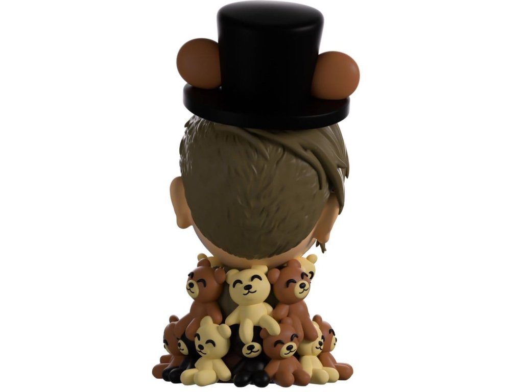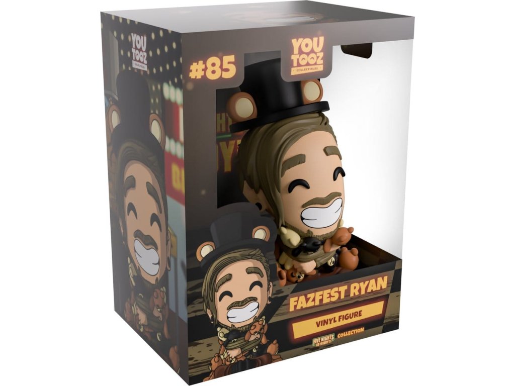 "Kam utečieš?" Ryan je pripravený na festival a vracia sa na Youtooz so svojou treťou vinylovou figúrkou! Sedí vo výške 10,6" a jeho bradatú tvár ožaruje absolútne obrovský úsmev, dlhá hnedá ofina sa mu kolíše na stranu, zatiaľ čo na hlave má čierny klobúk s okrúhlymi Freddyho ušami. Úplne sa teší, keď v náručí pevne objíma zbierku čiernych, hnedých a béžových medvedíkov, zvyšok sa mu hromadí okolo tela. Oblečený je v olivovozelenom svetri, hnedých nohaviciach a čiernych čižmách, ktoré má pred sebou zopnuté. Na vonkajšej strane balíka vidno, ako sa pohybuje medzi rušným festivalom, a hmlisté svetlá pokrývajú pozadie. Tmavý interiér potom hľadí na špinavú šachovnicovú podlahu, zatiaľ čo ochranný obal odhaľuje tmavočervenú záclonu, cez ktorú možno vidieť jeho postavu cez veľké priehľadné okno na prednej strane batohu. Tento zberateľský predmet sa dodáva v matnom, reliéfnom, ochrannom vonkajšom obale a vo vlastnom ochrannom plastovom obale pre maximálnu ochranu počas prepravy. O 8-BitRyanovi: 8-BitRyan je anglický youtuber známy svojimi videami s hrami FNAF, Geometry Dash a ďalšími hororovými hrami. Je známy svojimi strašidelnými hrami, ktoré od vytvorenia jeho kanála v roku 2015 získali milióny zhliadnutí. O hre Five Nights At Freddy's: Five Nights at Freddy's je hororová hra na prežitie, ktorú vytvoril Scott Cawthon. Hra je postavená tak, že hráč pracuje ako nočný strážnik v rodinnej pizzerii Freddy Fazbear's, pričom sa rýchlo dostane do konfliktu so zbierkou vnímajúcich animatronikov. Krátko po vydaní hry v roku 2014 si získala kultovú popularitu a rýchlo sa vyvinula do komplexného fiktívneho univerza doplneného o lorespiny a rôzne pokračovania. Predbežný dátum vydania: august 2026Dodatočné parametre