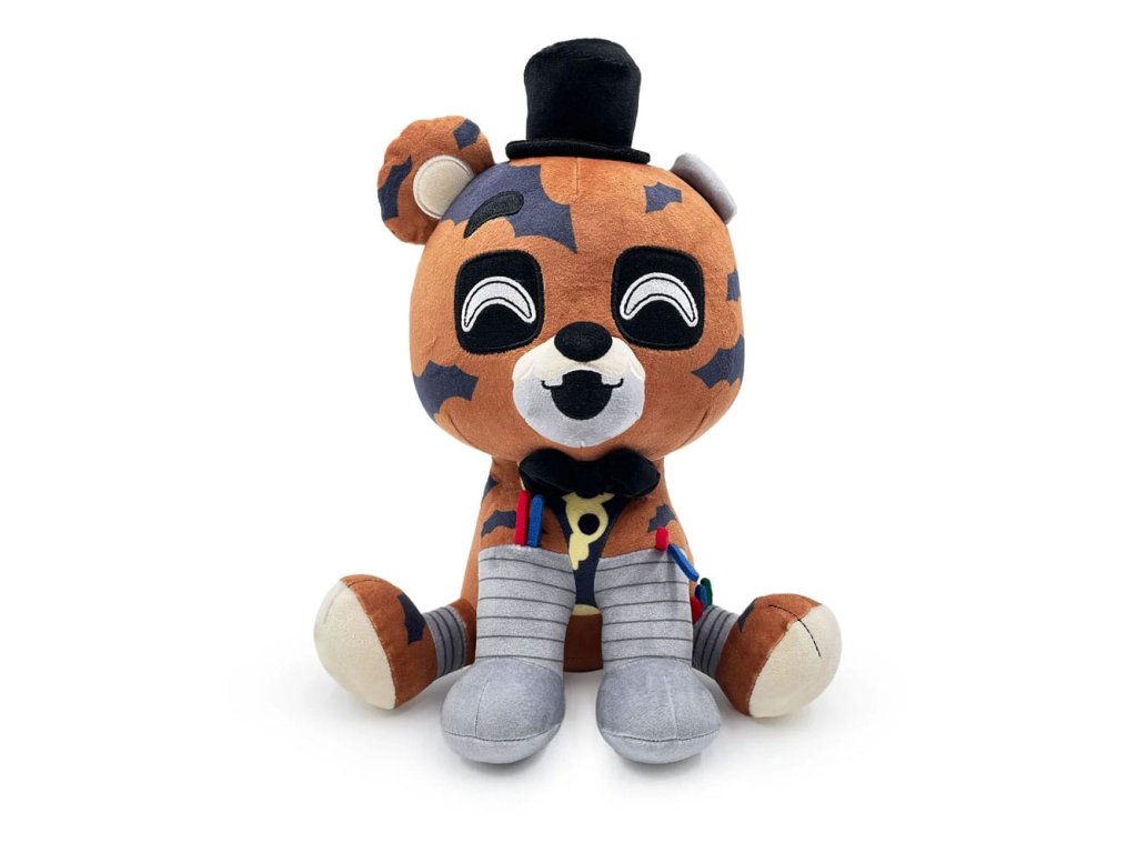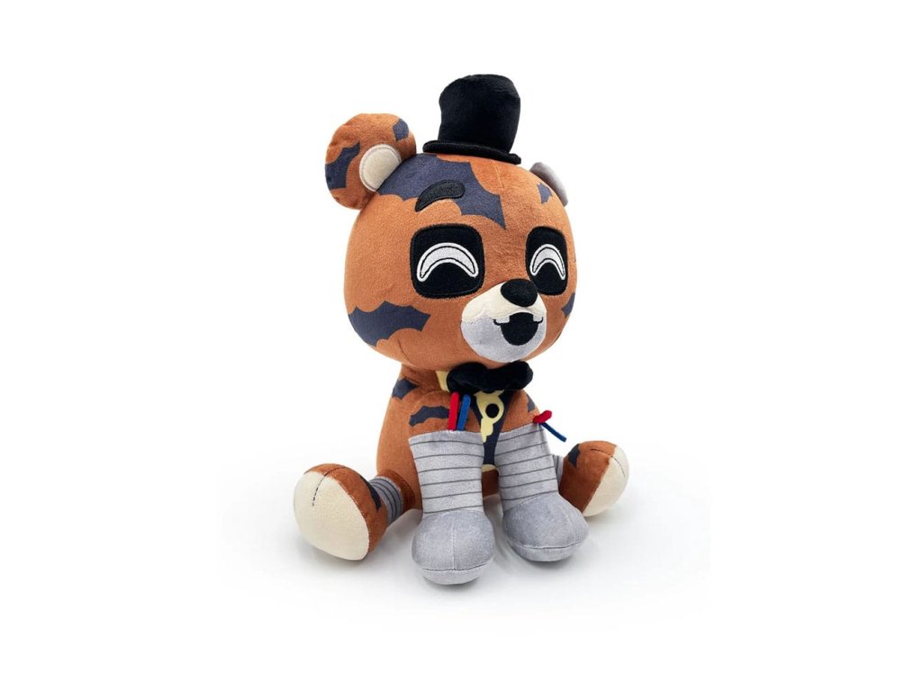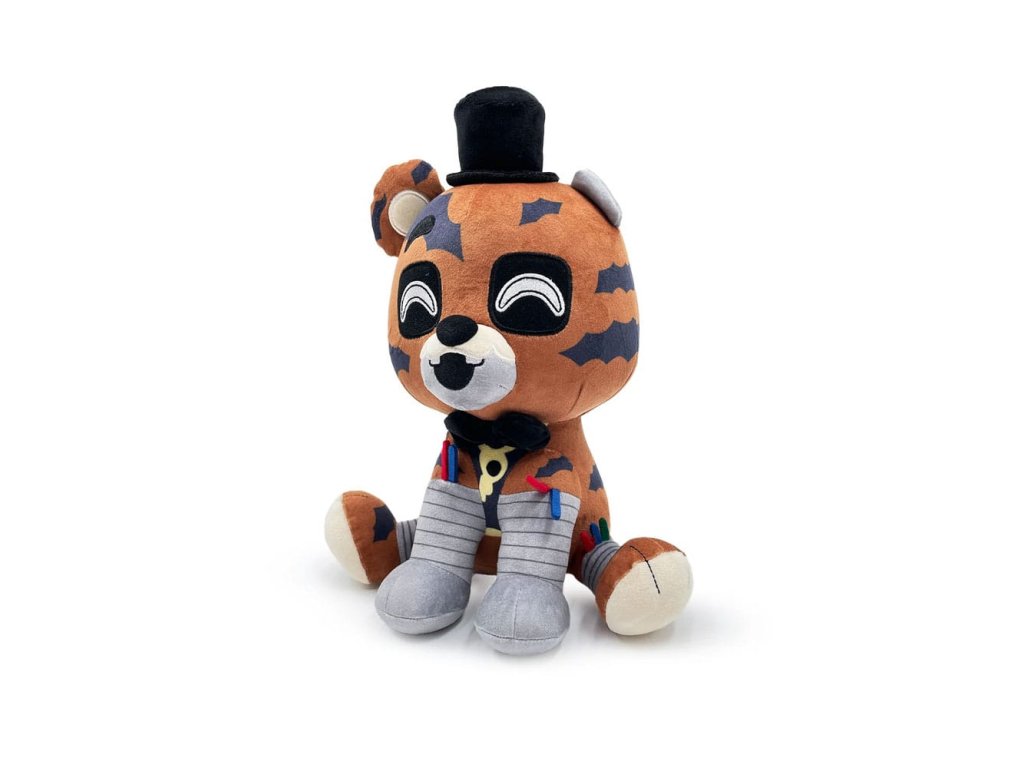 Horí niečo? Počkajte! Počkajte! Počkajte! To je Freddyho kabát! Sedí 9 centimetrov vysoký, z tmavých štvorcových viečok mu žiaria jasne biele oči, chýbajúca čeľusť sa mu ohýba do otvoreného úsmevu, keď mu z tváre odpadávajú kusy srsti a odhaľujú kovovú lebku, zatiaľ čo uprostred hlavy vedľa jediného ucha sedí roztomilý klobúk. Okolo krku má oblečeného čierneho motýlika, kovovo sivé ruky má posadené vpredu a zadné nohy vykopnuté dopredu, spod ošúchanej srsti mu trčia farebné drôty. Táto plyšová figúrka je vypchatá až po švy 100 % bavlnou PP a vyrobená zo zmesi sublimačných a bežných minky materiálov, úplne ideálna na maznanie! Len sa uistite, že ste pri ňom nechali svetlá! O postavičke Freddy v plameňoch: Freddy v plameňoch je jeden z hlavných zloduchov zo série fanúšikovských hier "The Joy of Creation", v ktorej hrá Scott Cawthon a ktorá je inšpirovaná hrou "Five Nights at Freddy's 4".Dodatočné parametre