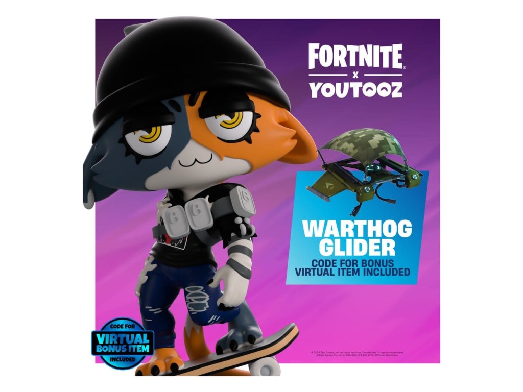 "Buď mačací cool "Hľadáte najfajnovejšieho partnera do dua? Pretože Meow Skulls to so svojím debutom na Youtooz myslí vážne! Stojí 13 cm vysoká na svojom skateboarde, ktorý je podopretý koncom jej dlhého oranžovo sfarbeného chvosta. Pod tým tmavým, napoly zatvoreným okom sa na jej modro-oranžovej mačacej tvári skrýva šibalský úsmev a čierna čiapočka jej sklopí uši. Oblečené má sivo-biele pruhované tričko pod čiernou mikinou s roztrhanými rukávmi, z hrude a bokov jej visia rybie kosti ako reťaze a okolo trupu sa jej ovíja postroj z plechoviek, na sebe má roztrhané modré džínsy. Na vonkajšom obale je zobrazená, ako hrá na modrej gitare pred dúhovým tornádom, zatiaľ čo vnútro je pokryté fialovým až ružovým gradientom. Cez fialový ochranný obal potom preletí biela čiara, keď je jej postava viditeľná cez veľké priehľadné okno na prednej strane obalu. Tento zberateľský kúsok sa dodáva v matnom, reliéfnom, ochrannom vonkajšom obale a plastovom chrániči presnej veľkosti pre maximálnu ochranu počas prepravy. o Fortnite: Fortnite je online videohra, ktorú vyvinula a vydala spoločnosť Epic Games. Vďaka niekoľkým rôznym herným režimom, v ktorých hráči bojujú o to, kto zostane posledný, spájajú sa s priateľmi pri obrane cieľov alebo si vytvárajú vlastné arény, sa vďaka častým aktualizáciám, divokým príbehom a hernej akcii stala absolútnym kultúrnym fenoménom!Dodatočné parametre