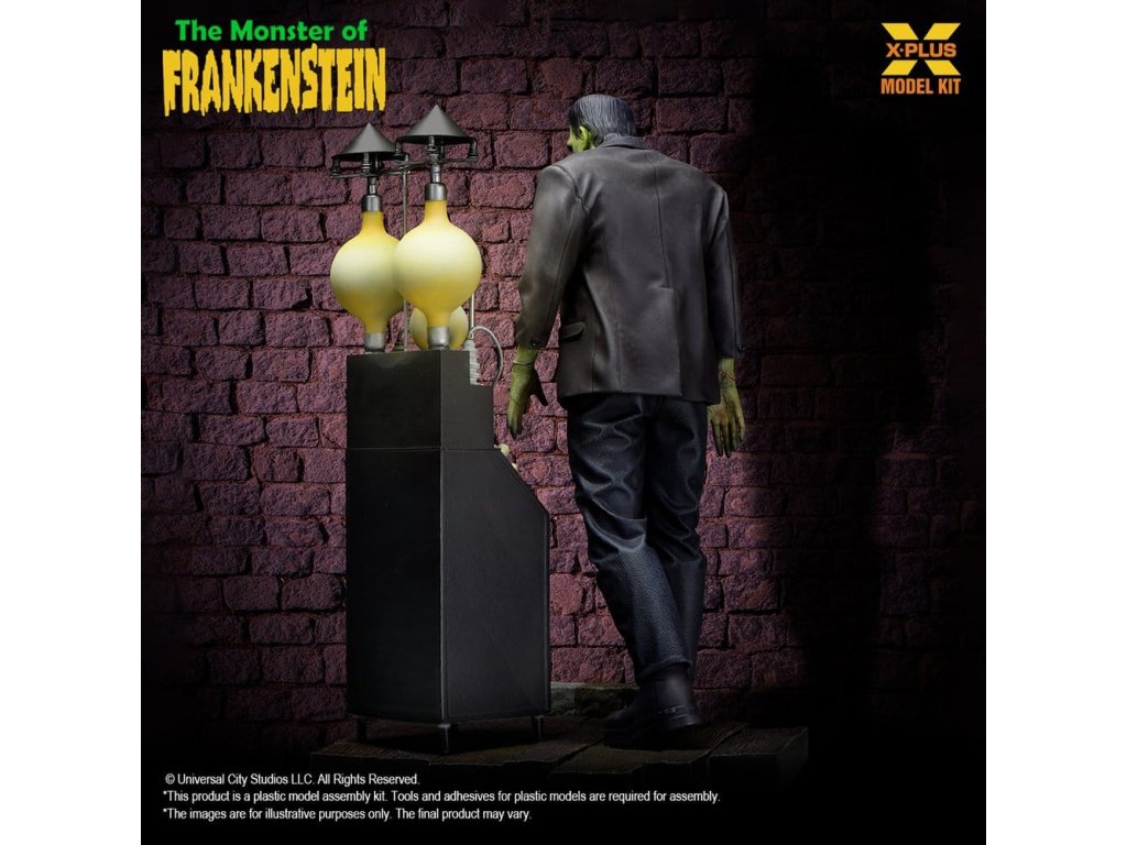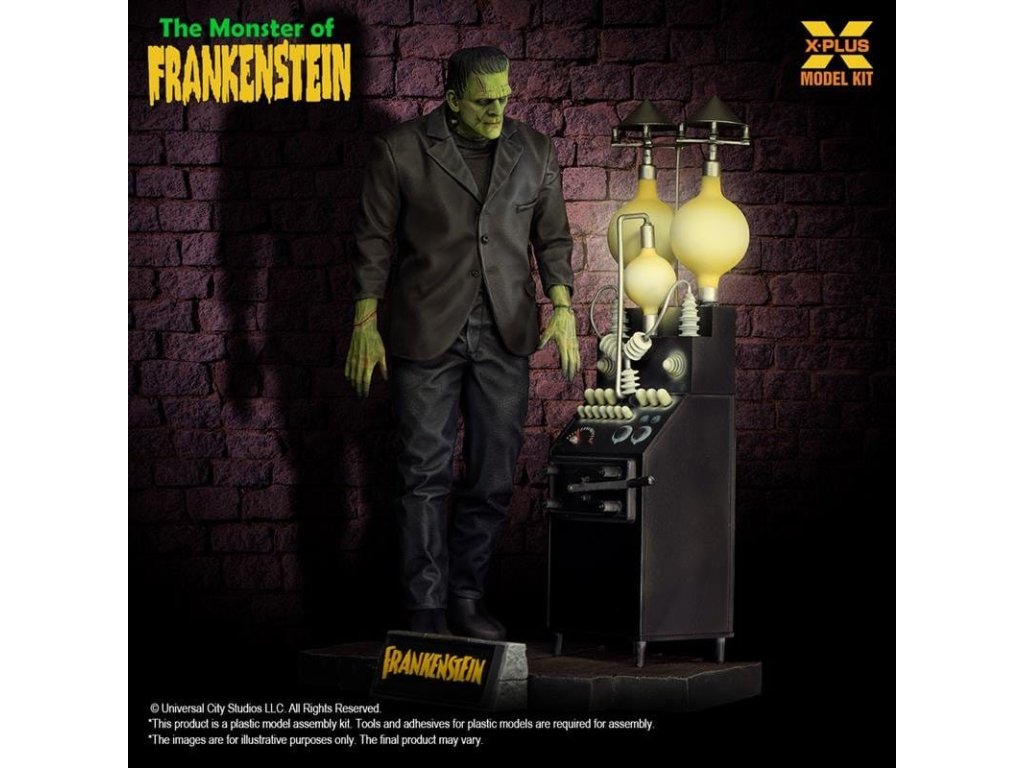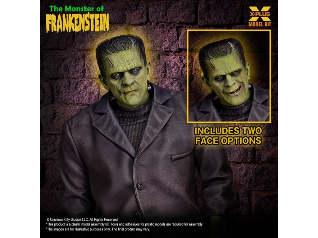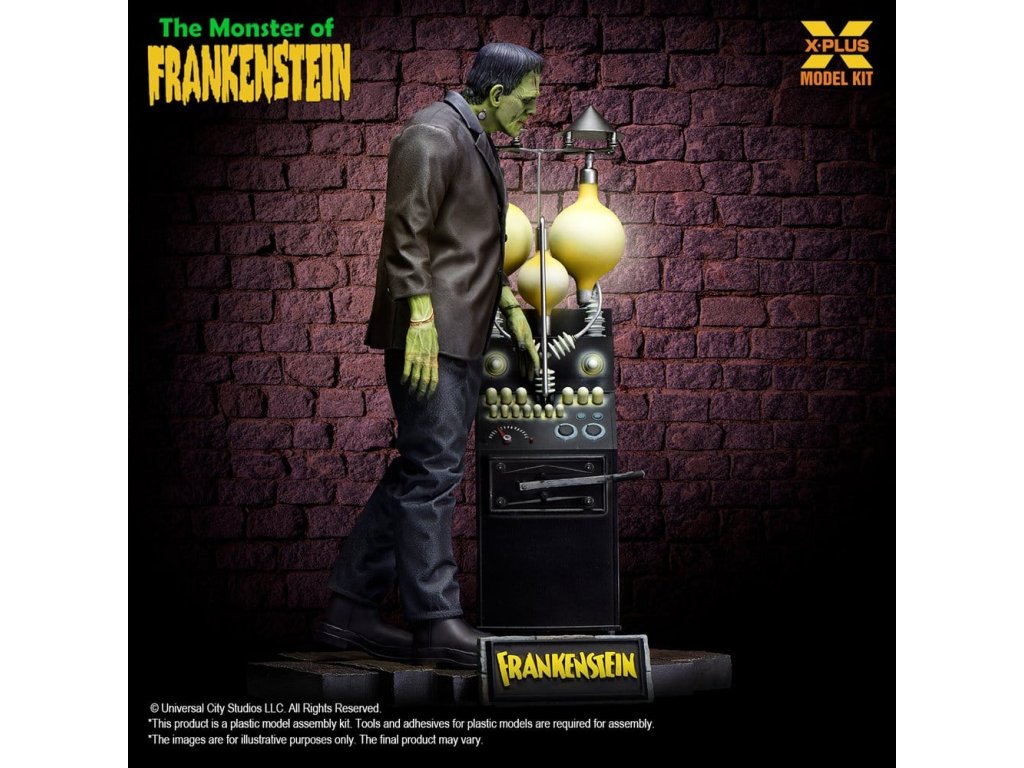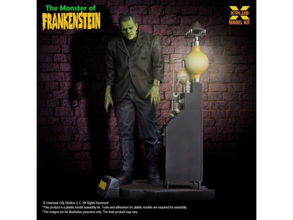 Netvor z klasického hororu Frankenstein z roku 1931 je teraz k dispozícii ako plastový model v mierke 1:8. Ikonické črty netvora sú verne reprodukované do najmenších detailov, vrátane vysokých proporcií, skrutiek na krku a prešívania na hlave a zápästí, ako aj oblečenia a doplnkov. Stavebnica obsahuje veľký kus experimentálneho vybavenia používaného pri vytváraní zakázaného života, výstavnú základňu pripomínajúcu drevenú podlahu laboratória a dve vymeniteľné hlavy s rôznymi výrazmi. Vďaka možnosti výberu medzi prázdnou tvárou bez emócií a groteskným úsmevom môžete naplno oceniť strašidelnú, ale fascinujúcu prítomnosť monštra, ktoré stvárnil Boris Karloff, vďaka ktorého výkonu sa táto postava stala celosvetovou hororovou ikonou. Výška približne 26,5 cm.Dodatočné parametre