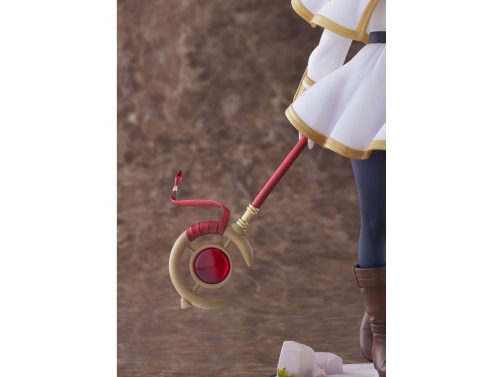 Spoločnosť Claynel s hrdosťou predstavuje figúrku Frierena z filmu "Frieren: Za koncom cesty" v mierke 1/7! Sledujte, ako nádherne vymodelovaný Frieren urobí prvý krok na novej ceste. Stojí na trávnatom dláždenom podklade a nepatrný pohyb jej vlasov a oblečenia v miernom vánku predznamenáva začiatok príbehu. Na jej uši a končeky prstov je pridaná slabá ružová farba, ktorá vytvára priesvitnú, bledú pokožku a náznak farby krvi. Pohlcujúce výrazy a oči rôznych odtieňov zdôrazňujú tajomnú krásu Frieren. Palica je vytvorená z priehľadnej časti s drahokamami, ktoré sa trblietajú a v každom okamihu akoby začarovali. Prineste si začiatok cesty Frieren domov!Dodatočné parametre
