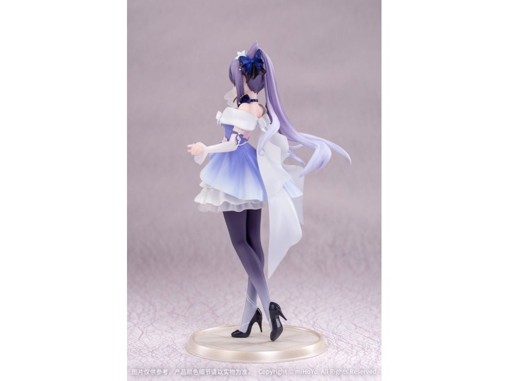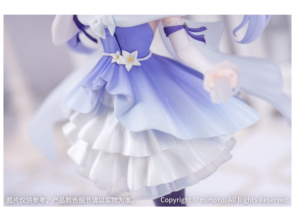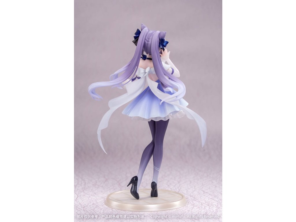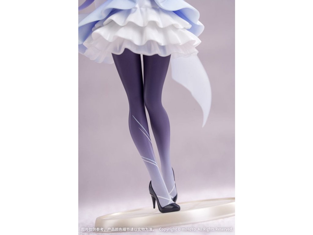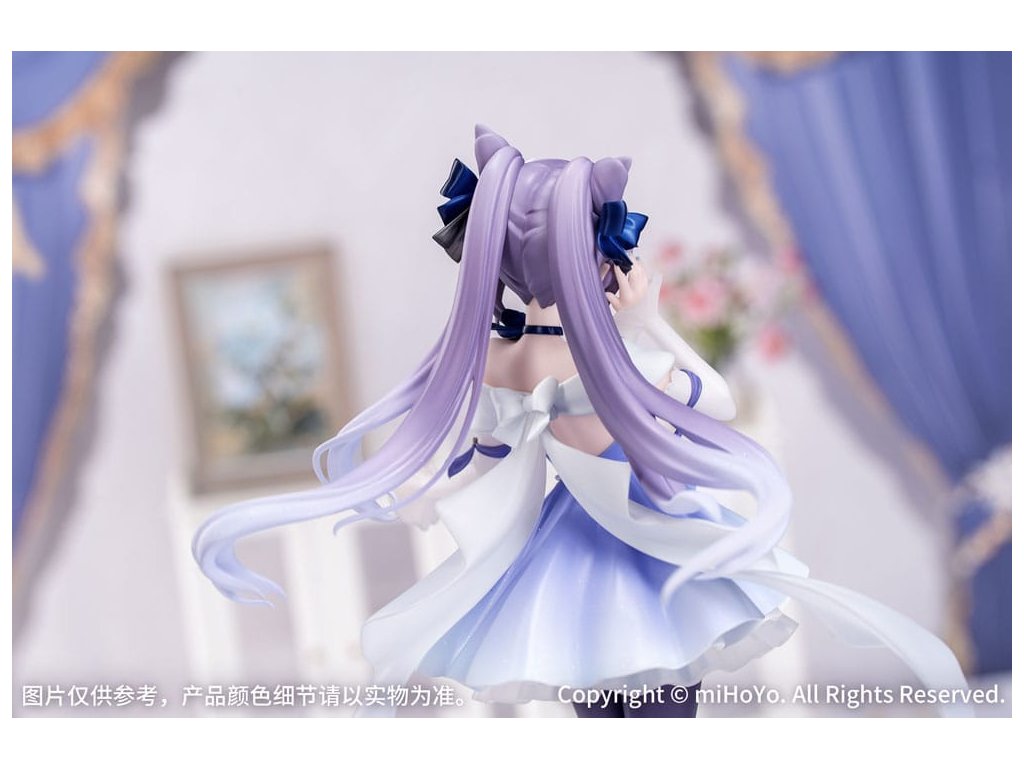 Už čoskoro od spoločnosti Genshin Impact vychádza Keqing Ver. 1/8 Resplendent Feast! Keqing zdobí jemná šatka s lila gradientom, jej splývavá stuha tancuje s vetrom. Jej sukňa vrstvená vzdušnými volánmi a čistým bielym šifónom sa pod mesačným svitom drobí ako obláčiky. Jej splývavé vlasy a fialová sukňa sú posiate trblietkami pripomínajúcimi hviezdny prach, zatiaľ čo tmavomodrý golier dopĺňa rovnaká stuha vo vlasoch. Perlová retiazka na páse Glaze Lily sa jemne pohupuje pri každom kroku a zachytáva elegantný pôvab lady Yuheng. Cestovatelia, dovolíte, aby sa táto jedinečná žiara Liyue stala večnou hviezdou na vašich prstoch?Dodatočné parametre