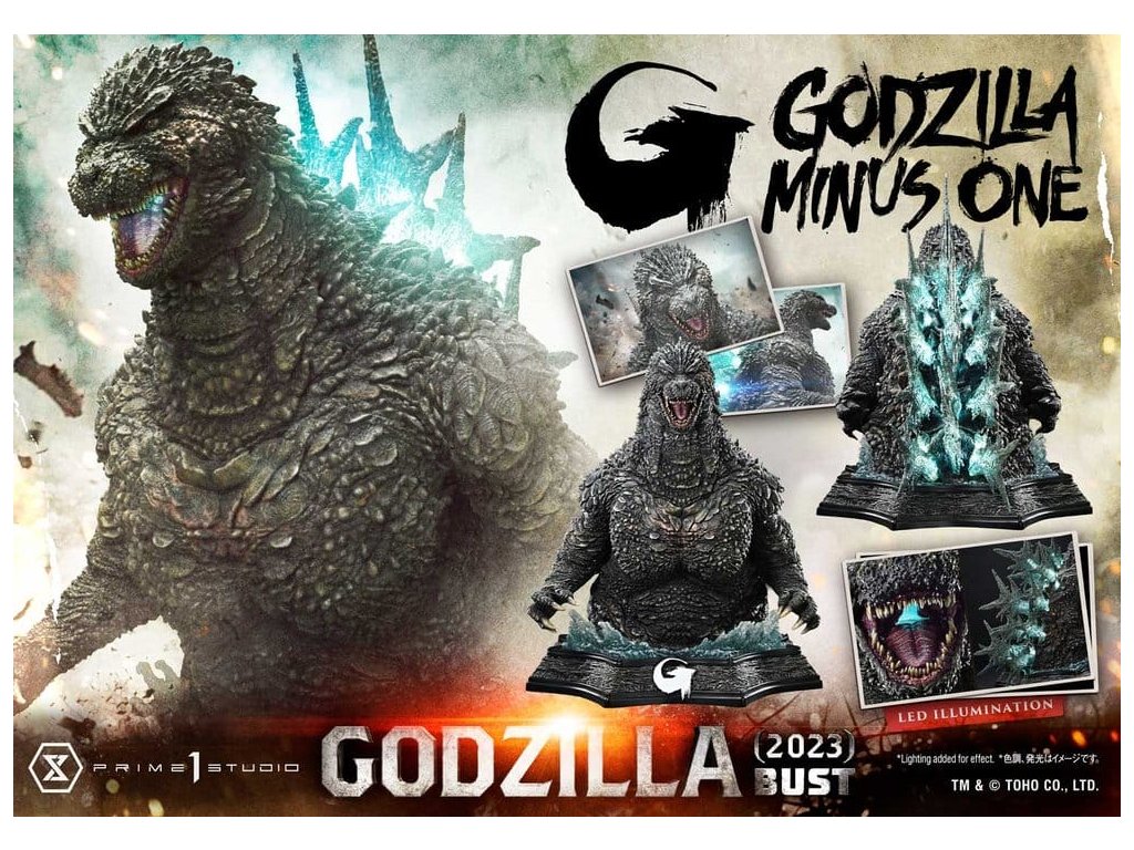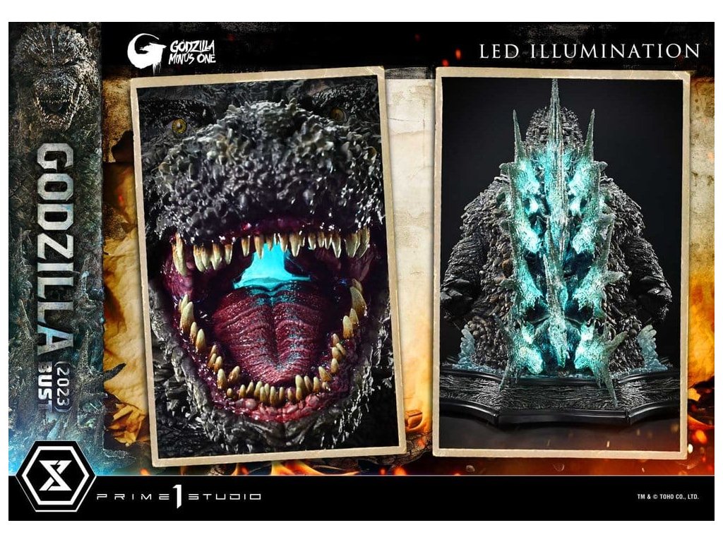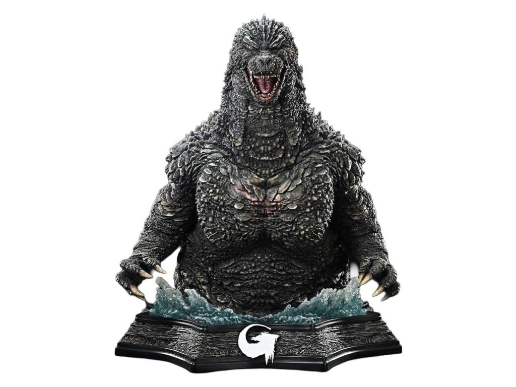 More sa rozostupuje pred obrovskou príšerou. Úchvatná vízia stelesnená v 91 cm veľkej buste. Film "Godzilla mínus jedna", ktorý je oslavovaný po celom svete pre svoje prelomové vizuálne efekty a hlbokú ľudskú drámu, pripomína 70. výročie vzniku Kráľa monštier. Z tohto pamätného filmu pochádza busta v životnej veľkosti. Celotelová socha od štúdia Prime 1 z roku 2024 (UDMGMO-01) zobrazuje hrôzu útoku monštra so zničenými budovami a spanikárenými davmi usporiadanými do dioramatickej kompozície. Táto busta zdedila sochárstvo a maľbu z tohto diela, ale zamerala sa na samotnú veľkosť. Meria približne 87 cm na výšku a 91 cm do hĺbky a zobrazuje Godzillu, ako sa prediera cez more a postupuje vpred. Okolo jeho pása sa vznáša búrlivý vodný vír, ktorý evokuje neviditeľný pohyb jeho ponorenej dolnej časti tela. Tým, že návrh zámerne vylučuje prvky, ako sú budovy alebo ľudia, ponára divákov do ohromujúcej váhy a tlaku samotnej Godzilly. Detailov je veľa: oči s priehľadnosťou šošoviek, ktoré sa lesknú akoby boli mokré; mohutný hrudník a ruky, starostlivo vybudované s vyrysovanou definíciou svalov; tmavý, potopený odtieň pokožky, ktorý naznačuje čas strávený v hlbinách oceánu. Každý aspekt odráža vrcholné sochárske a maliarske techniky. Okrem toho sú zúbkovaná čeľusť a chrbtové plutvy, vylepšené priehľadnými časťami, vybavené LED jednotkami. Svietia modrobielym svetlom, čím stvárňujú napätý okamih pred tým, ako Godzilla vypustí svoj teplý lúč. Kolosálne monštrum kráča cez oceán s majestátnosťou. Prineste si domov dychberúci pohľad, ktorý ste videli v novom filmovom míľniku série Godzilla. Špecifikácie: - LED svetlá (ústa, chrbtová plutva) Spôsob napájania LED: TBD *Pripravte si batérie, USB káble alebo iné potrebné predmety v závislosti od konečného spôsobu napájania.Dodatočné parametre