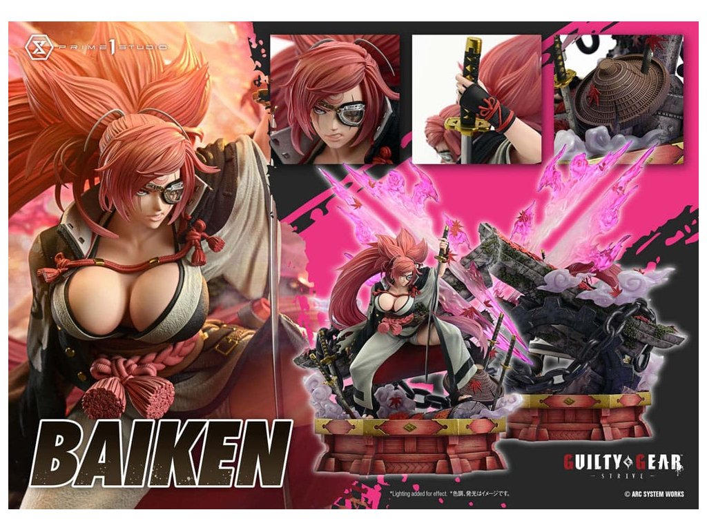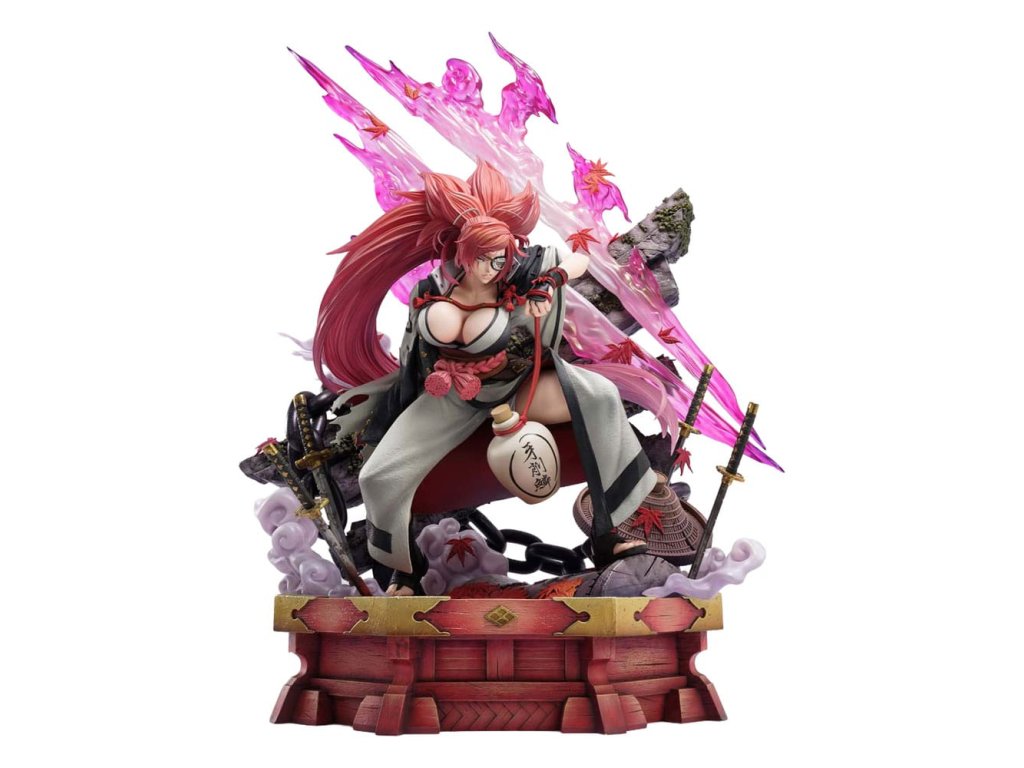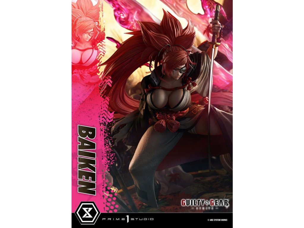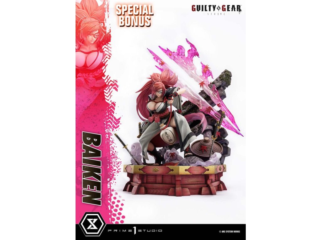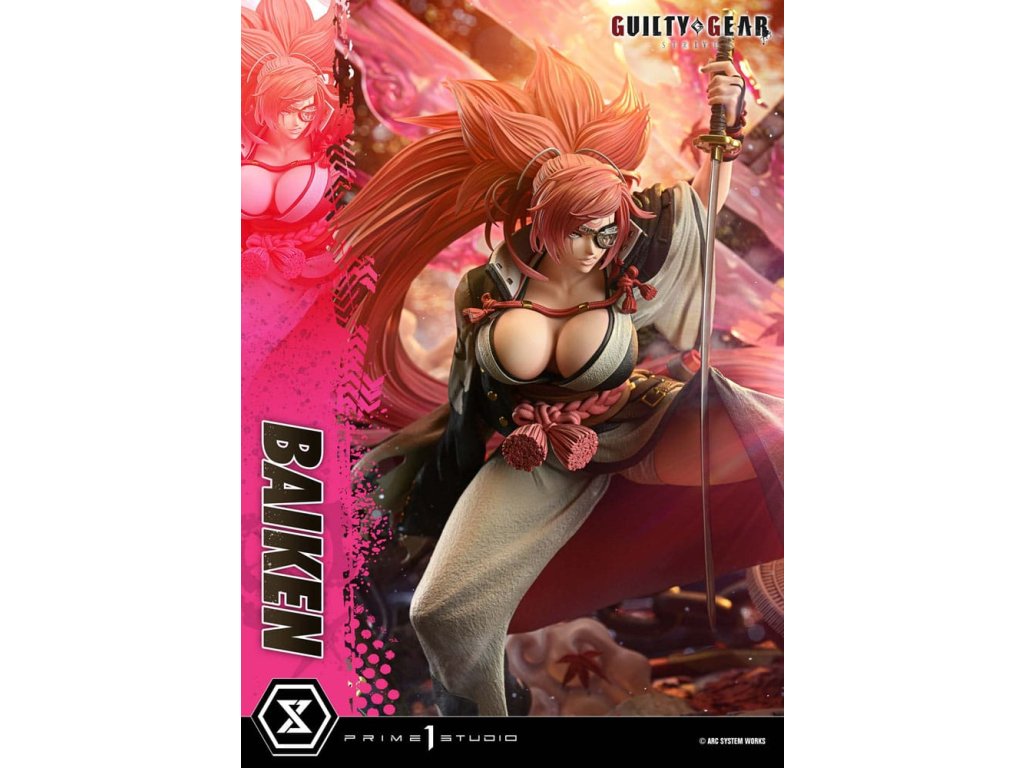 "Neexistuje víťazstvo ani porážka. Všetko je o sebapoznaní." Neochvejne prebudený samuraj - ktorého nezlomný duch je zachytený v mierke 1/4. Šermiarka, ktorá sa vyrovnala s túžbou po pomste, pokračuje na novej ceste. Z najnovšej časti série, ''GUILTY GEAR -STRIVE-'', sa Baiken pripája k Ultimate Premium Masterline. Tento kúsok s nízkym postojom a prenikavým pohľadom cez jej meč Namakura čerpá inšpiráciu z hlavného vizuálu a uzamyká jej divokého ducha do mohutnej podoby v mierke 1/4. Cieľom je previesť štýl 3DCG ''cel-shaded'', ktorý vyzerá na nerozoznanie od 2D animácie, do fyzickej sochy, každý povrch je vykreslený s jedinečným oddelením farieb, dokonale vyvážený s realistickými tieňmi a textúrou. Spoločne vytvárajú dojem, ktorý ste videli na monitore a ktorý sa ľahko prenáša do reálneho sveta. Pohľad naznačujúci krutú minulosť s ľadovou jazvou pod okuliarmi - každý detail je starostlivo vytvarovaný a namaľovaný, aby odhalil stopy jej neúprosného života. Jej divoké karmínové vlasy využívajú priehľadný materiál, pričom dynamický pohyb je zachytený prostredníctvom vypočítaných gradientov, ktoré nádherne reagujú na svetlo. Vrstvené kimono a haori sú vytvorené rôznymi textúrami látok, zatiaľ čo lebka a slivkový vzor vyvolávajú pocit elegancie a zdržanlivosti. Špeciálne navrhnutý podklad obsahuje japonské motívy ako poctu jej animáciám na javisku a po víťazstve. Kontrast medzi jemne padajúcimi javorovými listami a ostrým bleskom pretínajúcim tmu prehlbuje ponorenie sa do jej sveta. Táto bonusová verzia obsahuje ďalšiu ľavú ruku držiacu fľašu saké, čo evokuje jej robustný štýl pitia a jedinú vetu, ktorú vysloví, keď uznáva dôstojného nepriateľa - dodatočnú časť, ktorá stelesňuje jej myšlienku a ducha. Socha, ktorá zachytáva vizuálnu podstatu aj skutočnú povahu postavy - prebudeného samuraja v stave pokojnej jasnosti. Zažite jej drsnú, ale vznešenú prítomnosť vo svojej zbierke." Špecifikácie produktu: -GUILTY GEAR -STRIVE- tematický podstavec - 1 x vymeniteľná ľavá ruka (Namakura) - 1 x vymeniteľná ľavá ruka (fľaša saké) [BONUSOVÁ ČASŤ] - Limitovaný počet 400 kusov.Dodatočné parametre