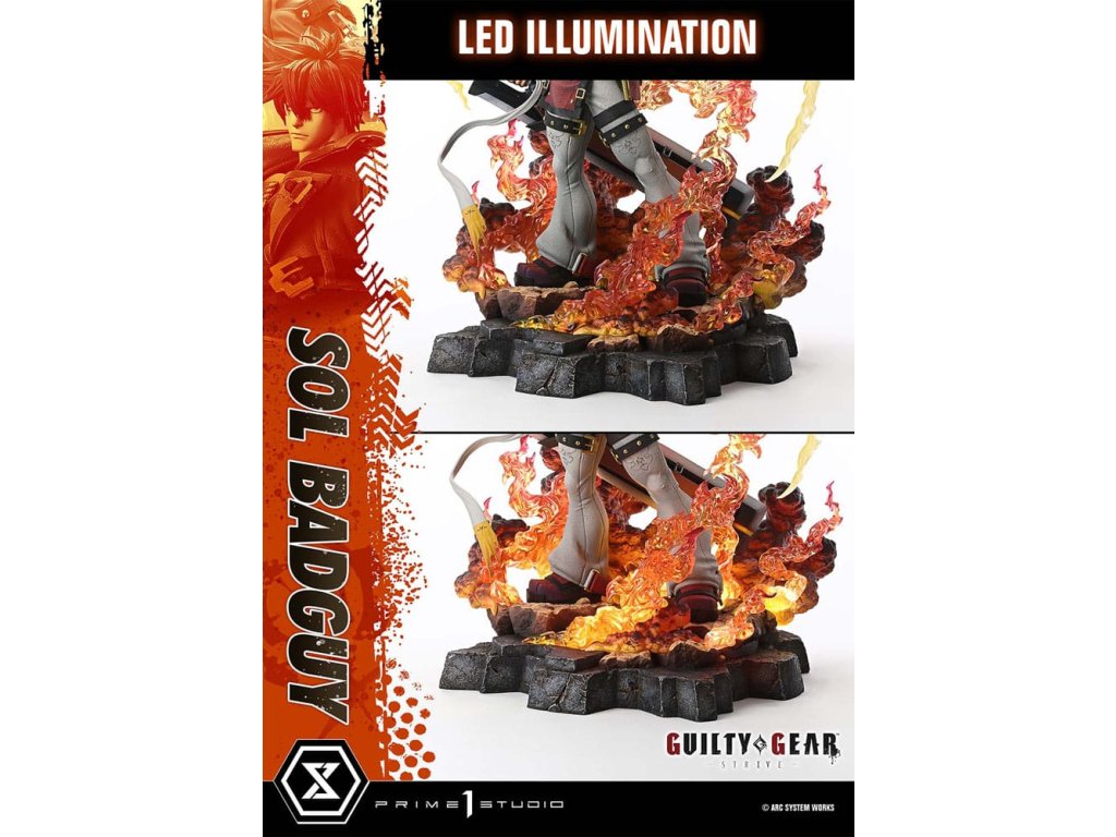 "Dúfam, že si sa modlil." V podobe, ktorá odhaľuje jeho mocnú silu, konečne prichádza "Plameň skazy"! Album "GUILTY GEAR -STRIVE-", označujúci koniec dlhej cesty drsného muža od roku 1998, stojí ako titul, ktorý uzavrel jednu kapitolu a otvoril ďalšiu pre ďalšiu generáciu. Z tohto prelomového diela pochádza hlavná postava, Sol Badguy, ktorý je teraz realizovaný ako súčasť série Ultimate Premium Masterline. prevalcuje všetkých nepriateľov divokou silou, výbušná energia neľútostného votrelca bola zachytená a stelesnená v tejto soške v mierke 1/4. Navrhnutá na motívy prevodu "cel-look" 3D grafiky do dvojrozmerného vzhľadu, každý povrch je starostlivo farebne oddelený, aby reprodukoval jedinečný anime vzhľad a zároveň ho vyvážil realistickým tieňovaním a textúrou. Silná póza vyjadruje rovnakú intenzitu ako samotná hra. od ostrej siluety a svalnatého tela až po detaily jeho kostýmu, každý prvok bol verne vytvarovaný. Rovnováha medzi štylizáciou a realizmom vytvára výraznú textúru a lesk sochy. Dve vymeniteľné pravé ruky - jedna na ramene a druhá spustená Outrage Mk.II - a dve ľavé ruky vrátane otvorenej dlane držiacej plamene umožňujú flexibilné pózovanie, pričom červené plamene vychádzajú spod jeho nôh a obklopujú ho v prebudenom špeciálnom pohybe "Heavy Mob Cemetery", ktorý sa prejavuje v Dragon Instale. Podstata mágie a Gear Cell je vyjadrená použitím priehľadných častí, čím vzniká tvar, ktorý je divoký a krásny zároveň. Okrem sochárskych prác a farieb bola integrovaná vnútorná LED jednotka - každé svetlo je umiestnené v presných uhloch pre väčší realizmus a prítomnosť. a pre bonusovú verziu je súčasťou balenia vymeniteľná hlava so Solovým ikonickým úsmevom - nezabudnuteľný výraz z mnohých kľúčových vizuálov, ktorý sa vám živo zobrazí pred očami. sol Badguy, muž, ktorý bojoval naprieč časom. Každý kúsok jeho sily a ducha bol vytesaný do tohto ultimátneho diela. S dôverou vám predstavujeme ústredný kúsok vašej zbierky "GUILTY GEAR". Špecifikácie produktu:- GUILTY GEAR - základňa s motívom STRIVE-- 1 x vymeniteľná hlava (vážna)- 2 x vymeniteľné pravé ramená (Outrage Mk.II: nasadené na ramene, spustené)- 2 x vymeniteľné ľavé ramená (otvorená ruka, zatvorená päsť)- LED osvetlenie (inštalácia Dragon, plamenná základňa)Spôsob napájania LED: TBD *Prosím, pripravte si batérie, USB káble alebo iné potrebné predmety v závislosti od konečného spôsobu napájania.Dodatočné parametre