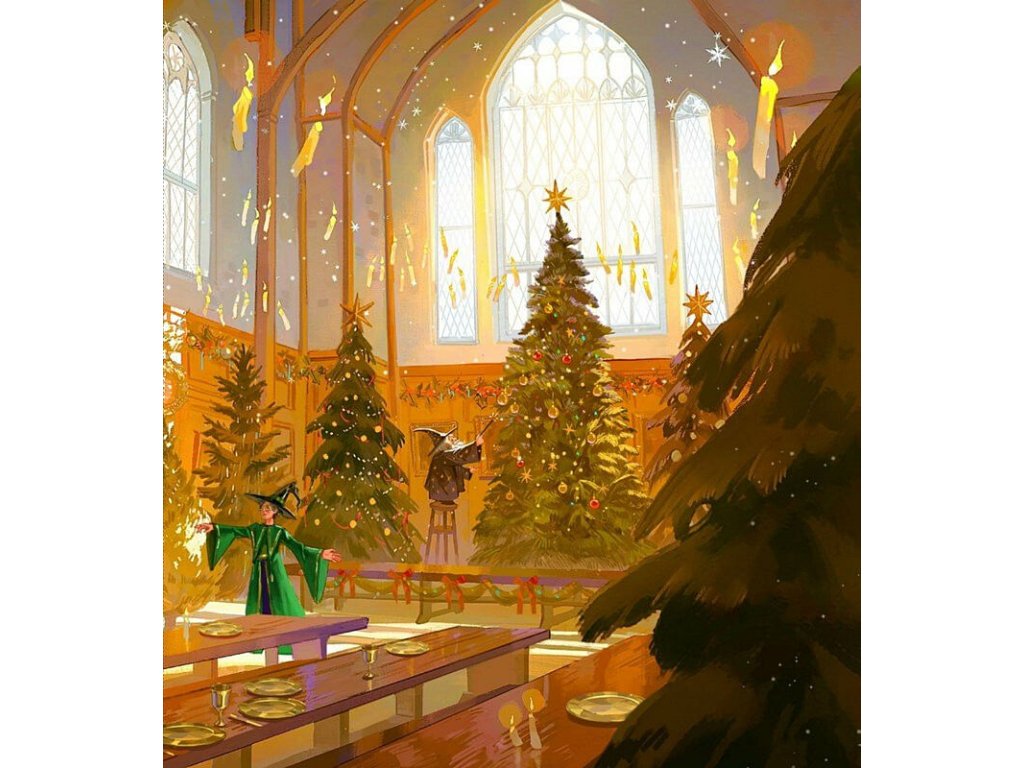 "Vianoce sa rýchlo blížili. V polovici decembra sa jedného rána zobudili v Bradaviciach a zistili, že vonku leží niekoľko metrov snehu." Takto sa začína dvanásta kapitola série o Harrym Potterovi, ktorá očarila milióny čitateľov na celom svete. Zažite prvé Vianoce mladého čarodejníka v Bradaviciach! Nádherné ilustrácie vás zavedú do sviatočne vyzdobenej Veľkej siene, útulnej nebelvírskej spoločenskej miestnosti, zasneženého areálu a ďalších miest plných sviatočnej atmosféry. Čaká ťa nefalšované čaro Vianoc...